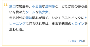 リニューアル前の説明文の「走る」を「歌う」に変えたらまんま千早になる