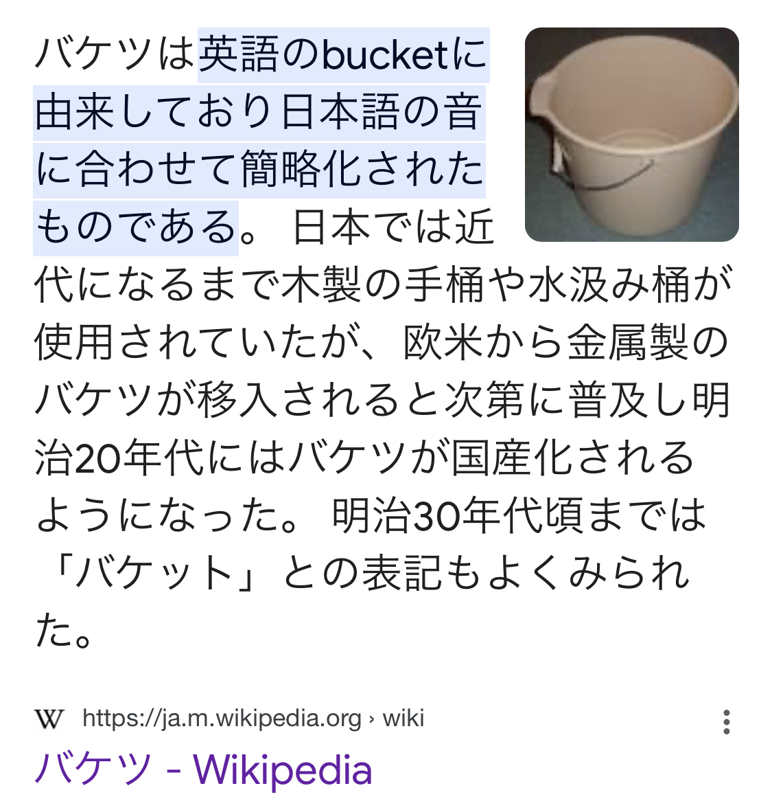 バケツは馬のお尻(ケツ)から出る糞を回収するのに使ったからバケツって言うんだよ。