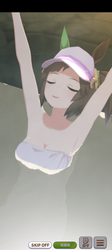 私服の帽子を脱いでサンバイザーに被り直して温泉につかるアイネス可愛い