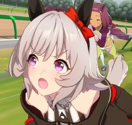 「カレン!ウマホ借りるぜ!はい、チーズってな!へへ、誰がどう見てもカップルだぜ!そんでウマスタ投稿!」