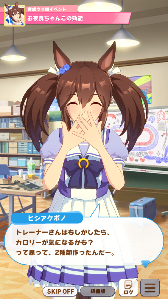 夜に仕事してるトレーナーに差し入れしに行くのに、こういう事ちゃんと考えられる子だぞ