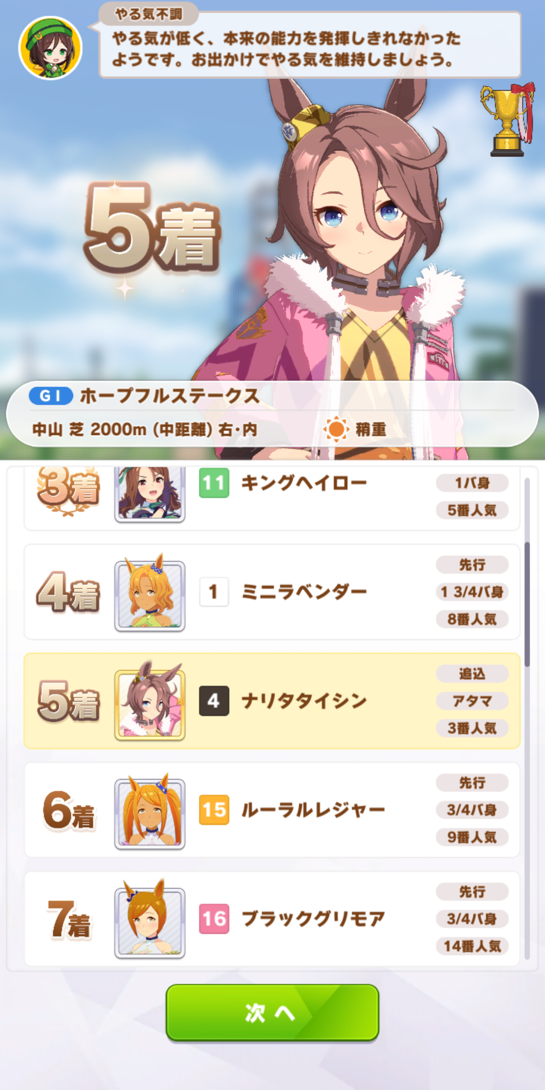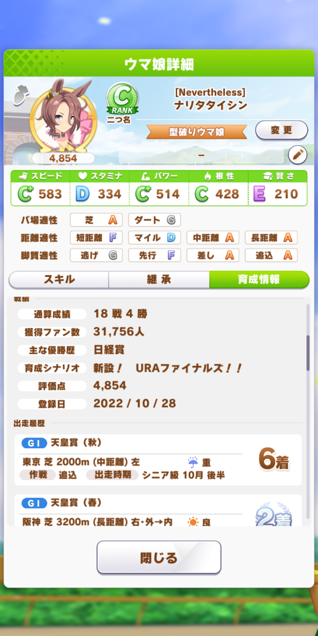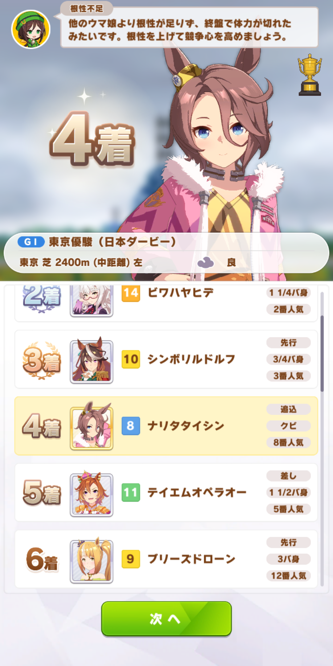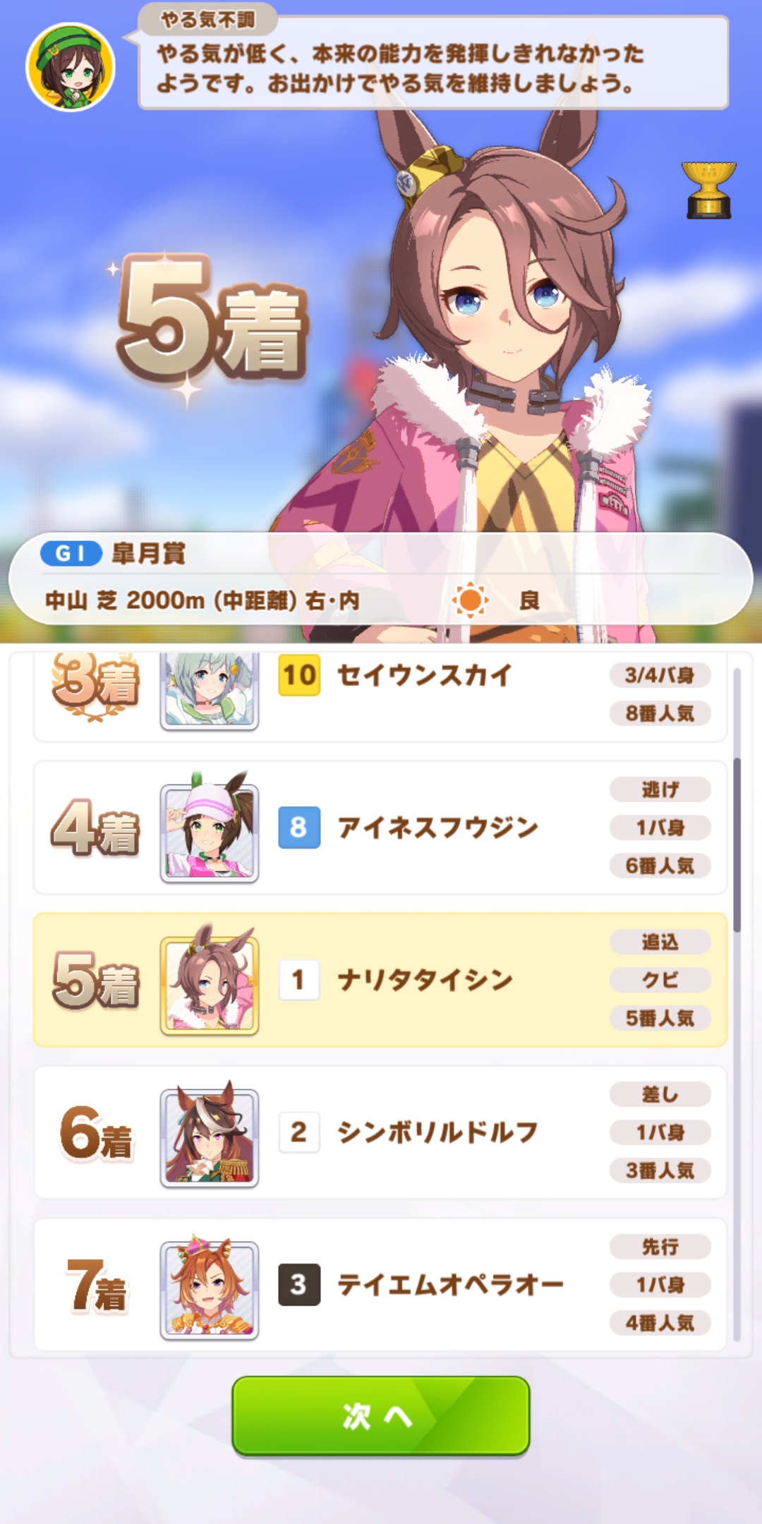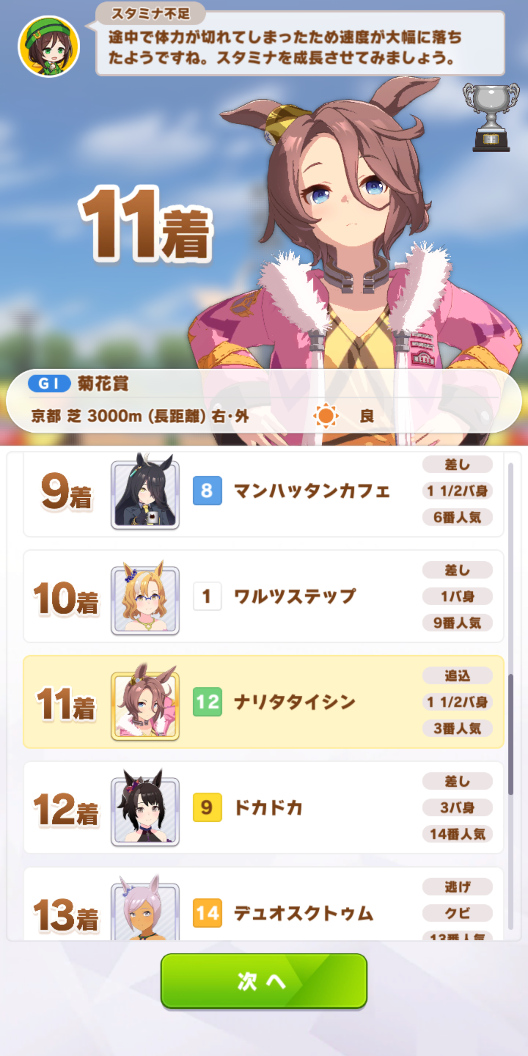 ナリタの育成はここで終わりだ、有馬まではいけるかもと思ったんだがな