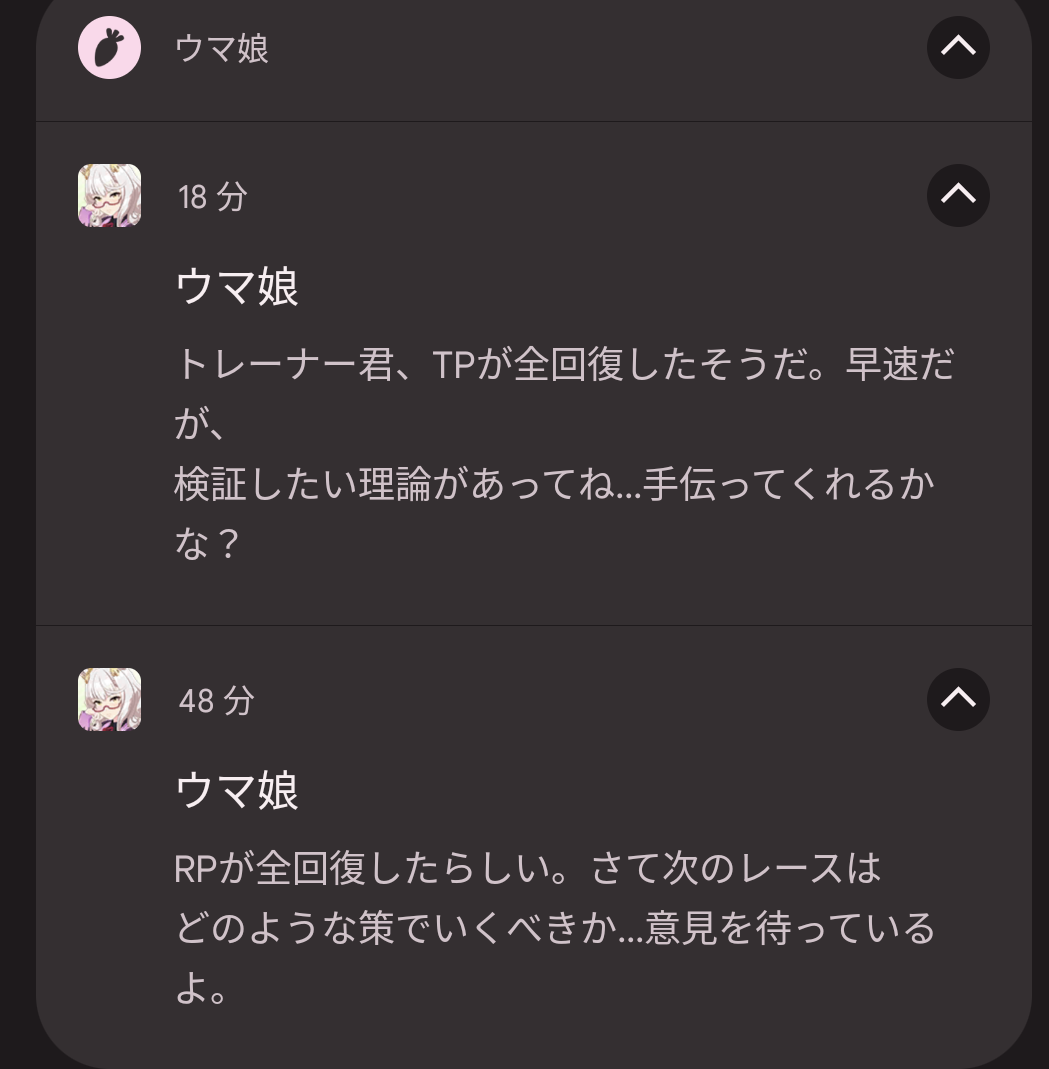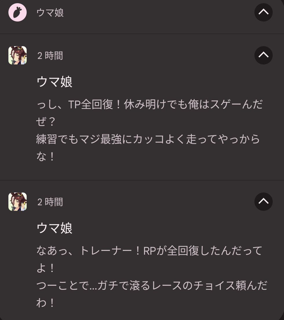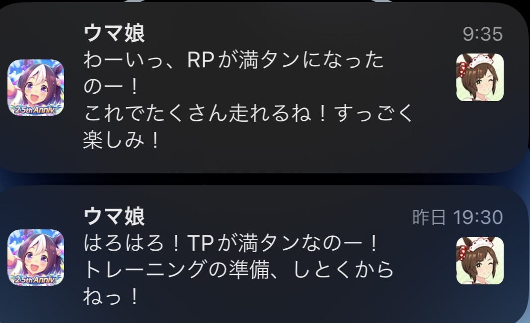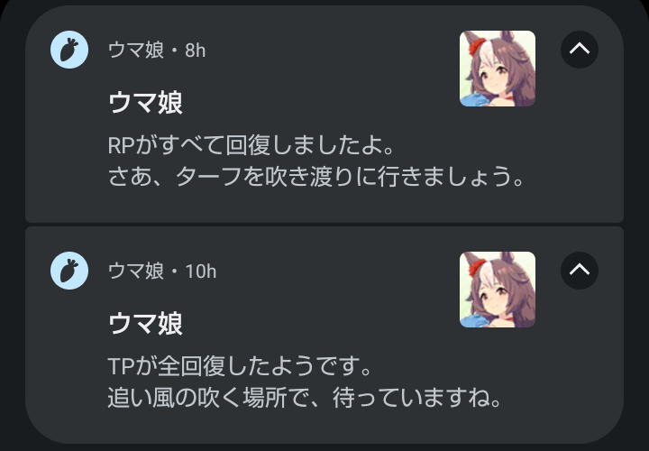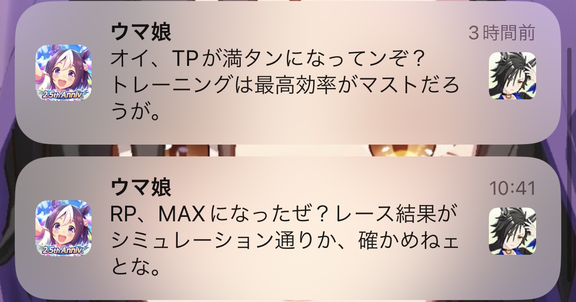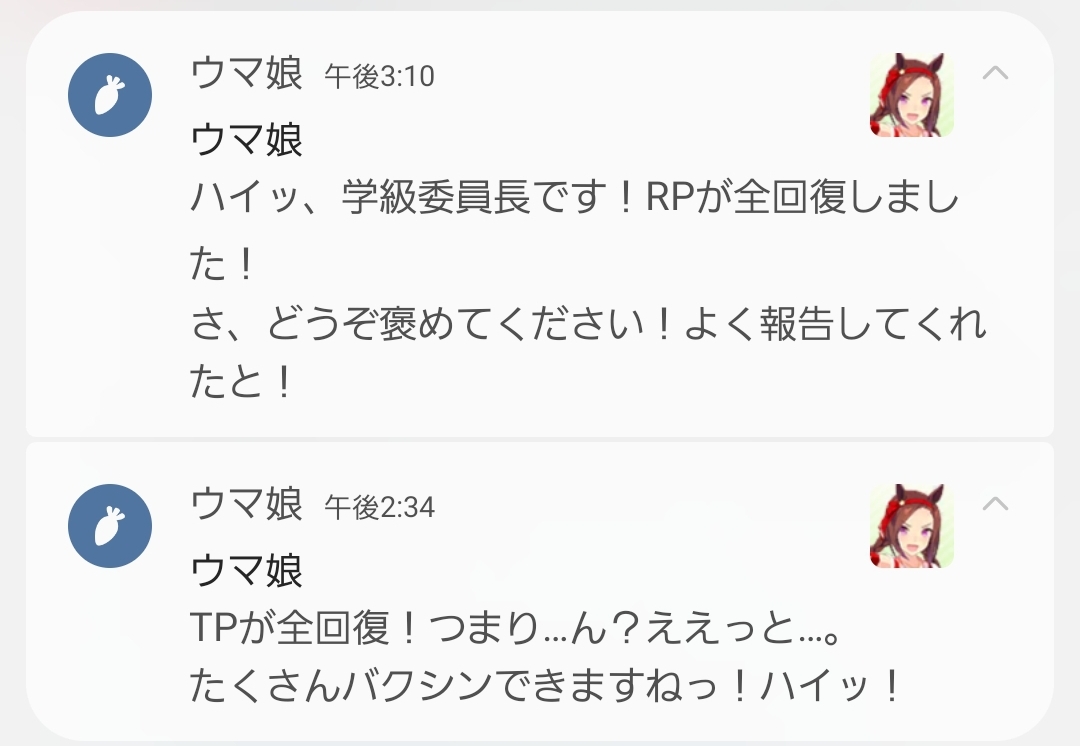 ウマ娘の通知のスクショを集めるスレ