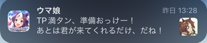 育成し終わってチーム競技場使い終わってから寝ると、起きた時に担当ウマ娘からメッセージが来ているという感動