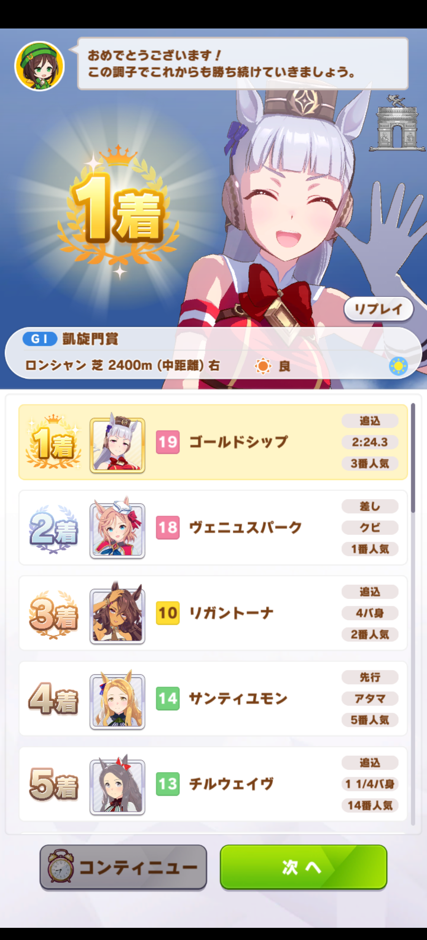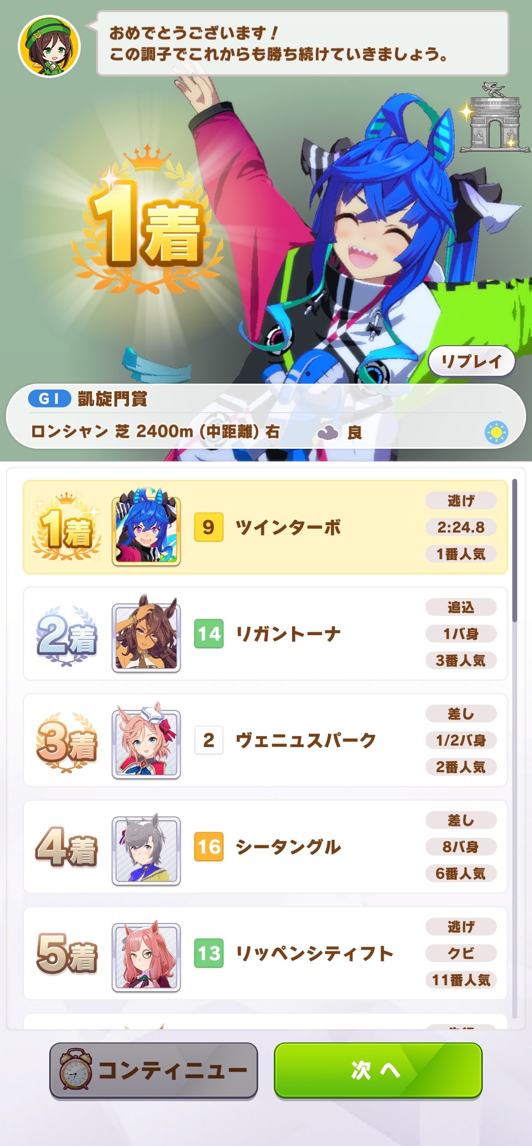 初勝利も初連覇もヘリオス…まだヘリオスでしか育成してないとも言う。