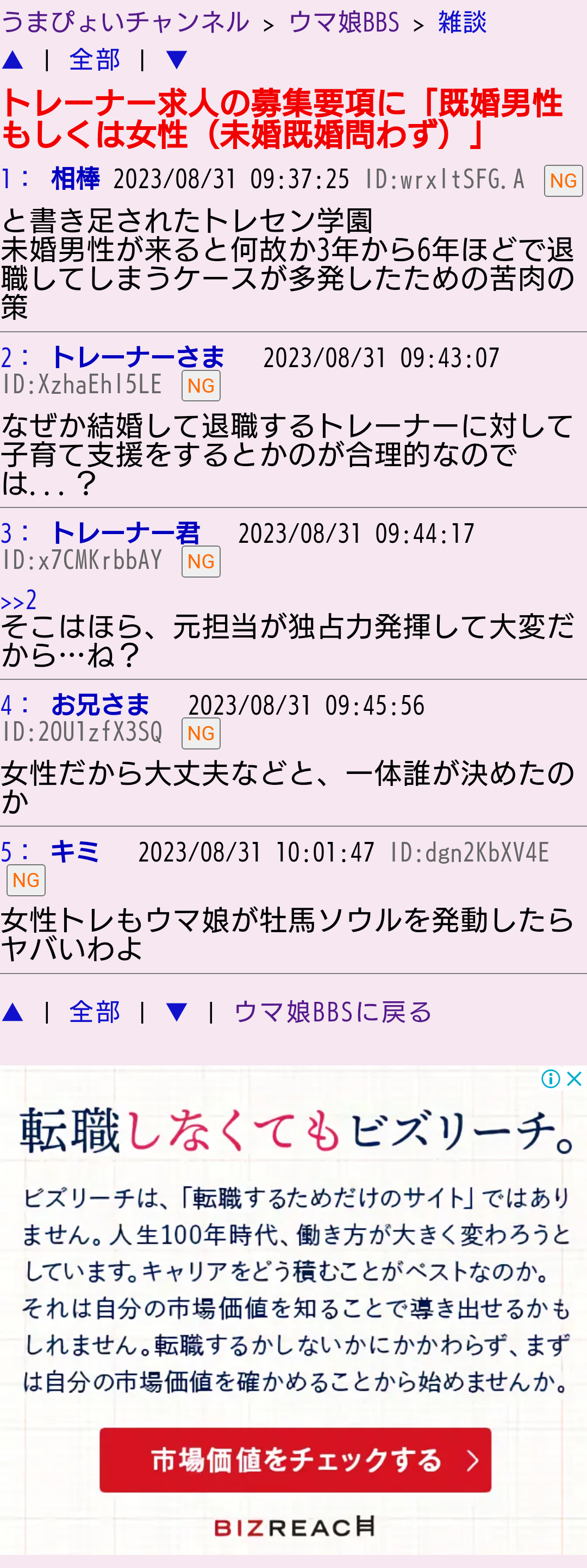なぜか結婚して退職するトレーナーに対して子育て支援をするとかのが合理的なのでは...?