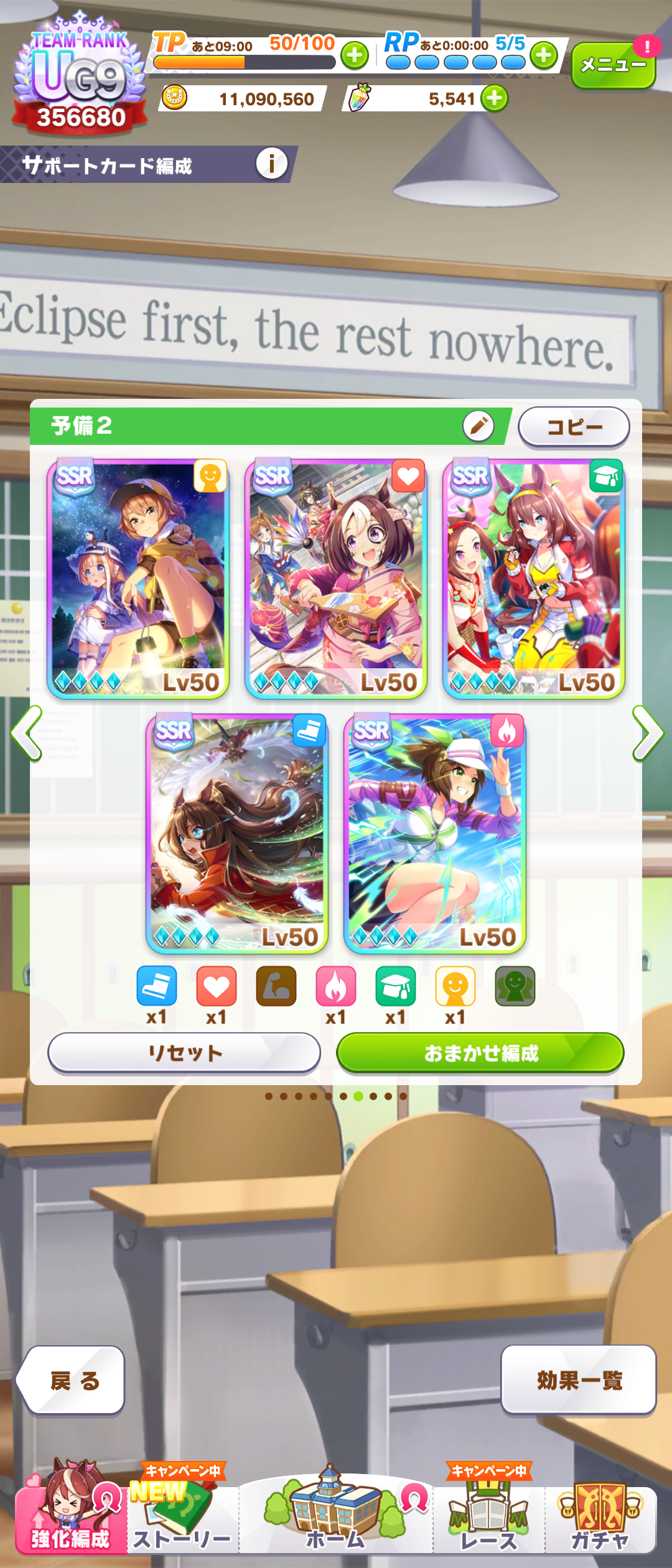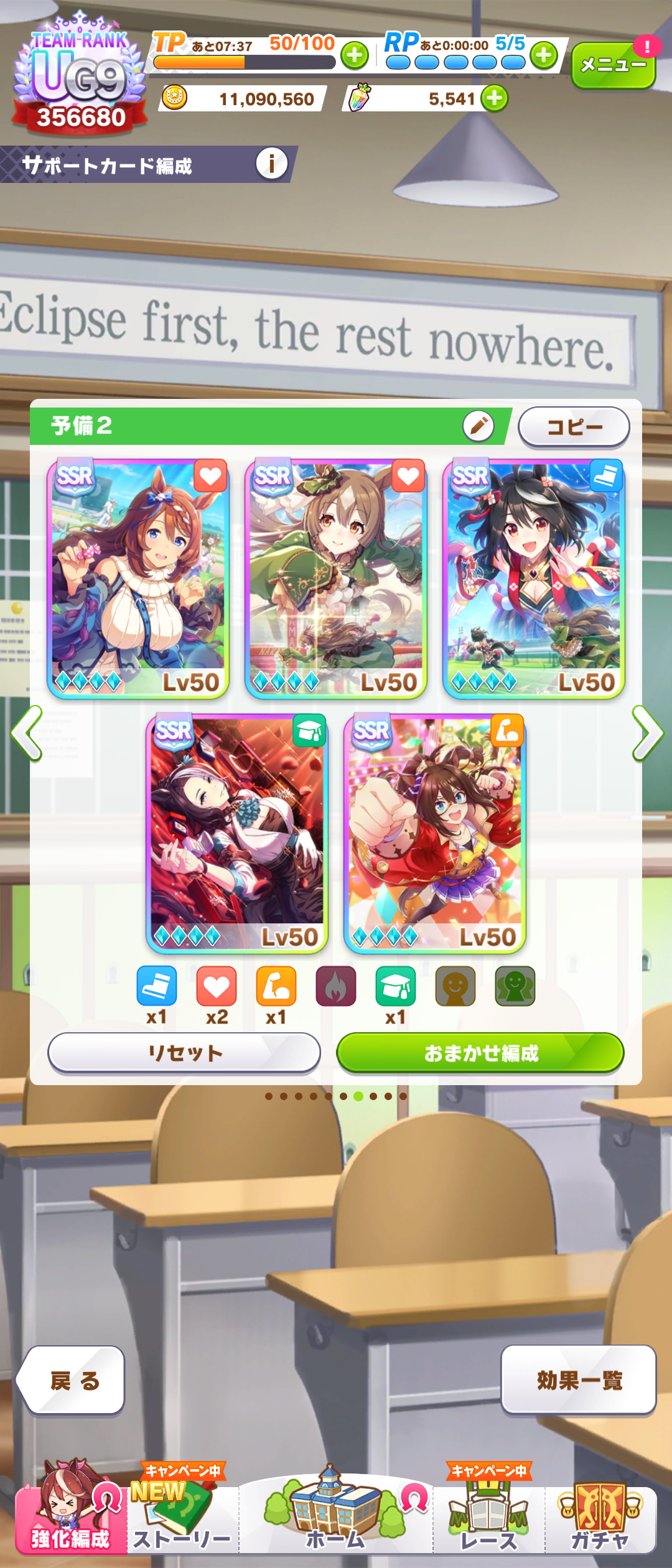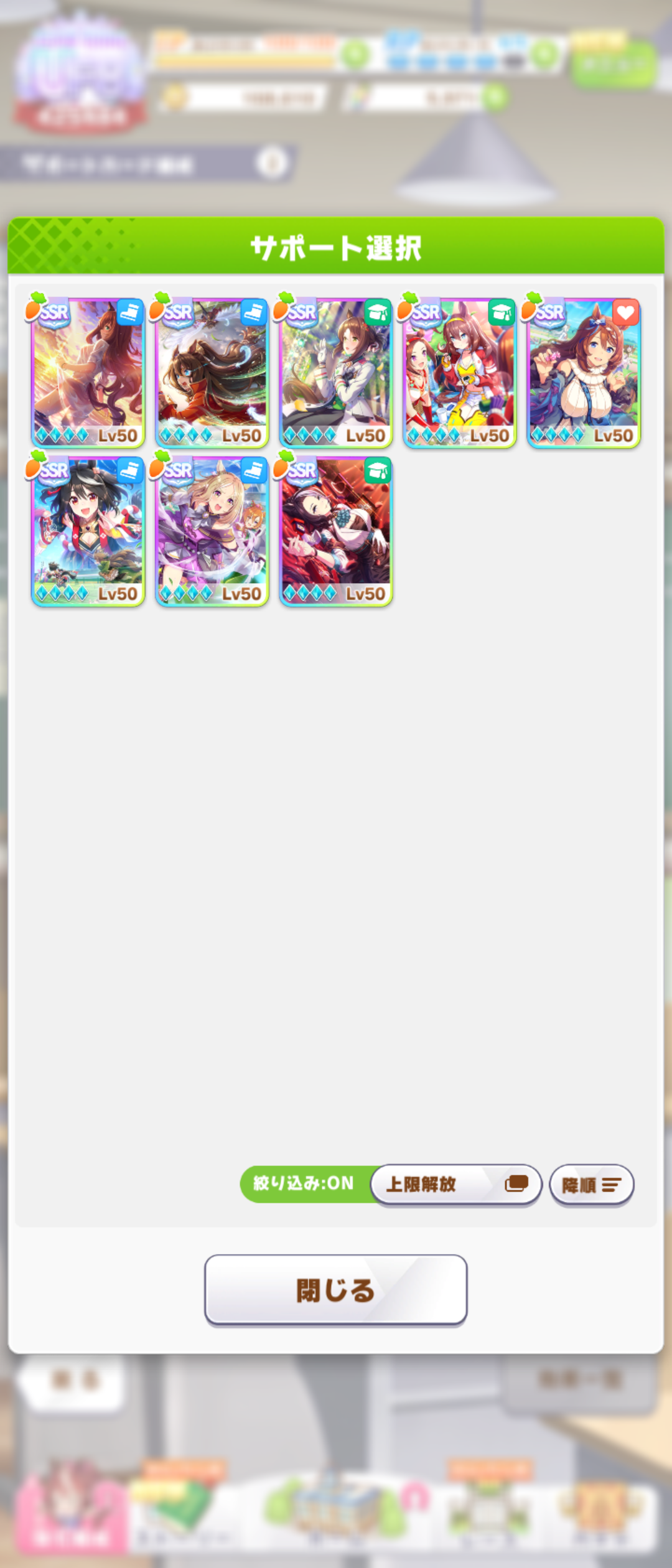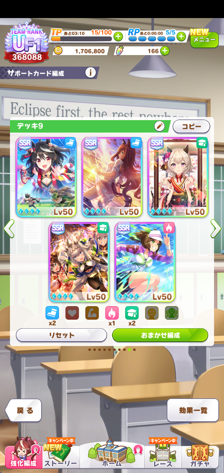 後はCB、スタミナセイちゃん、スズカさん、ファル子が3凸で王手
