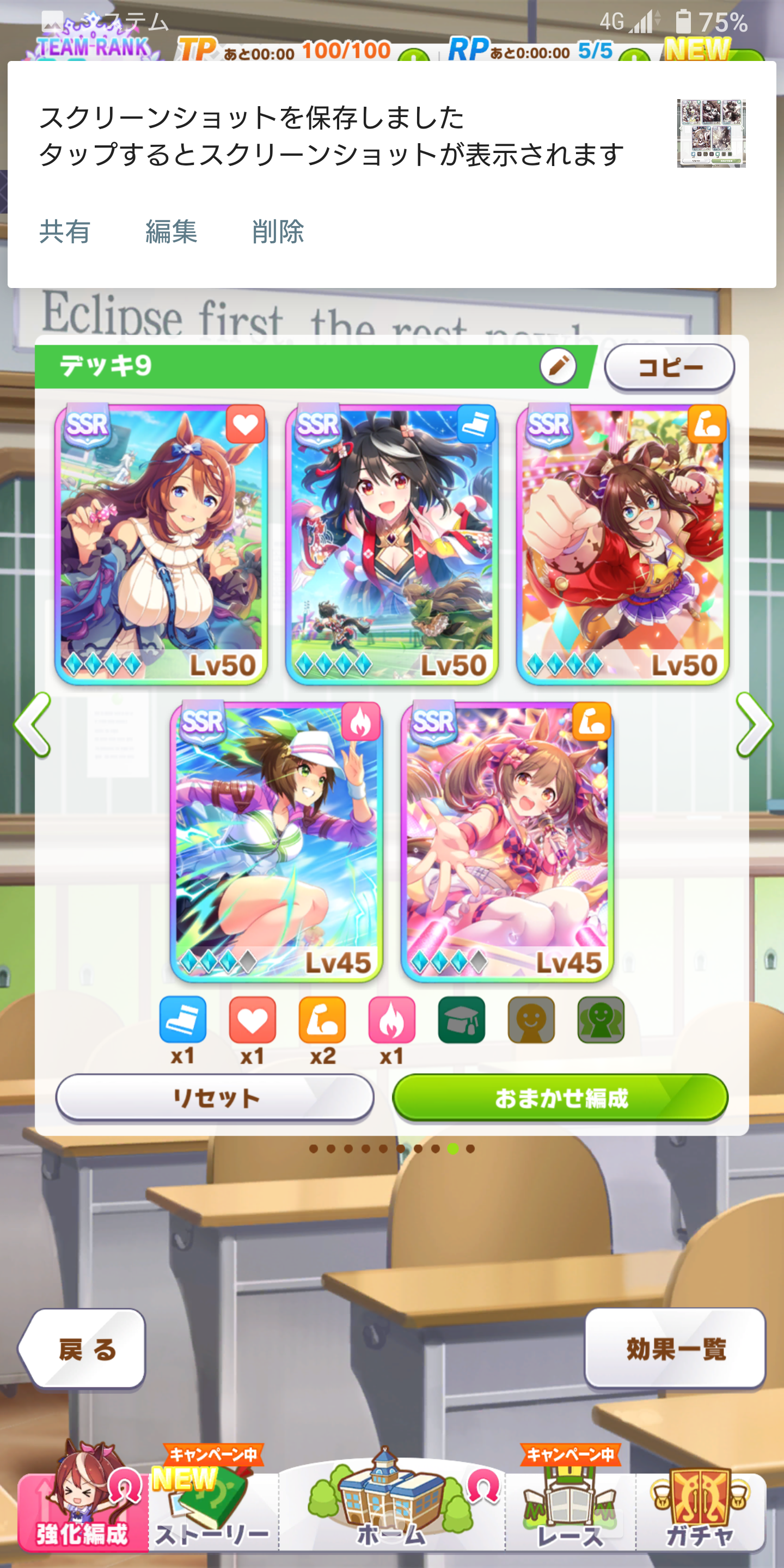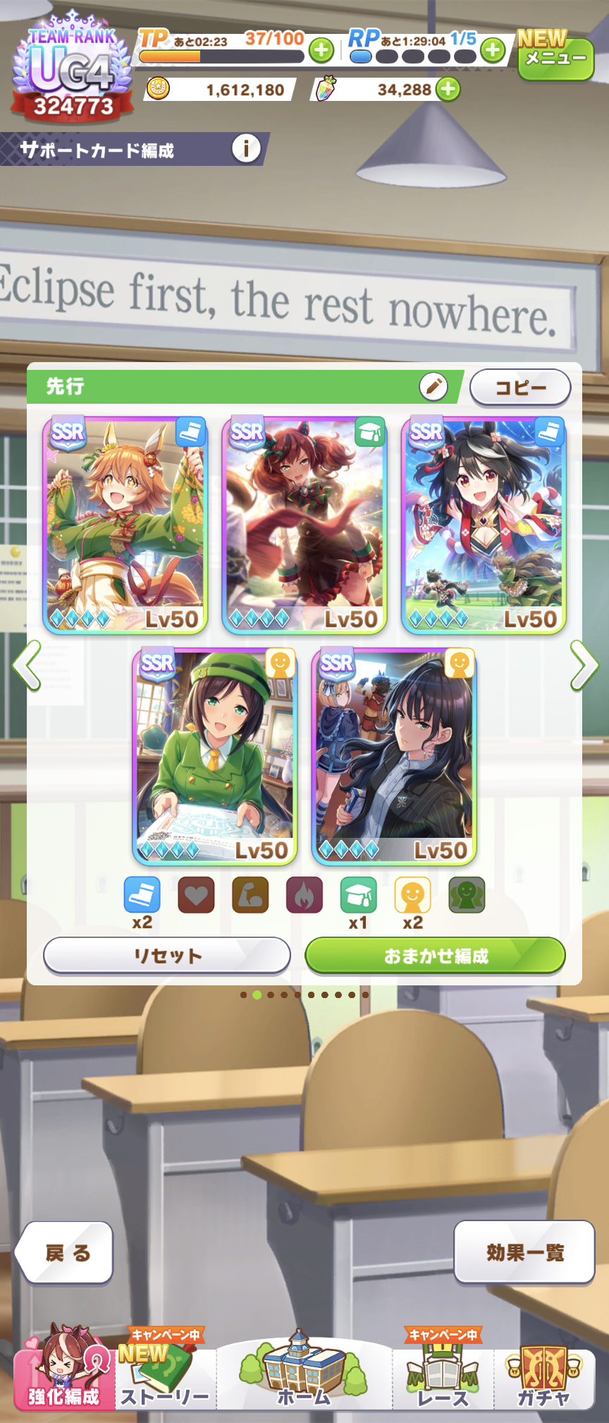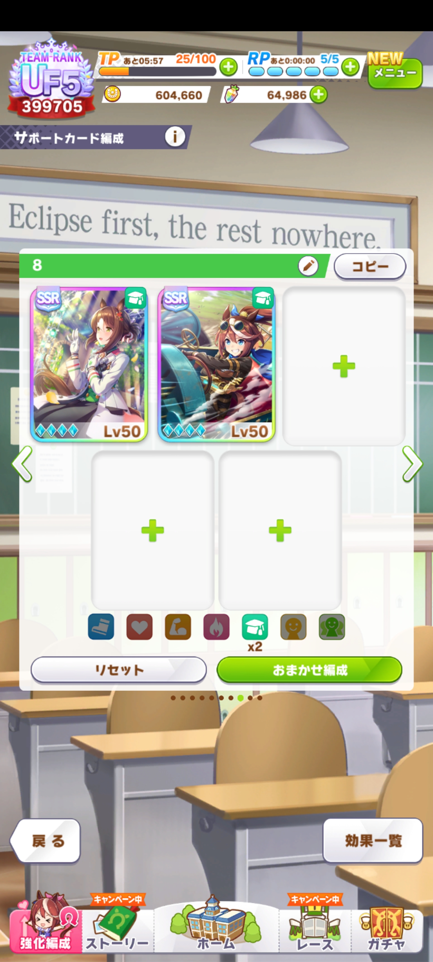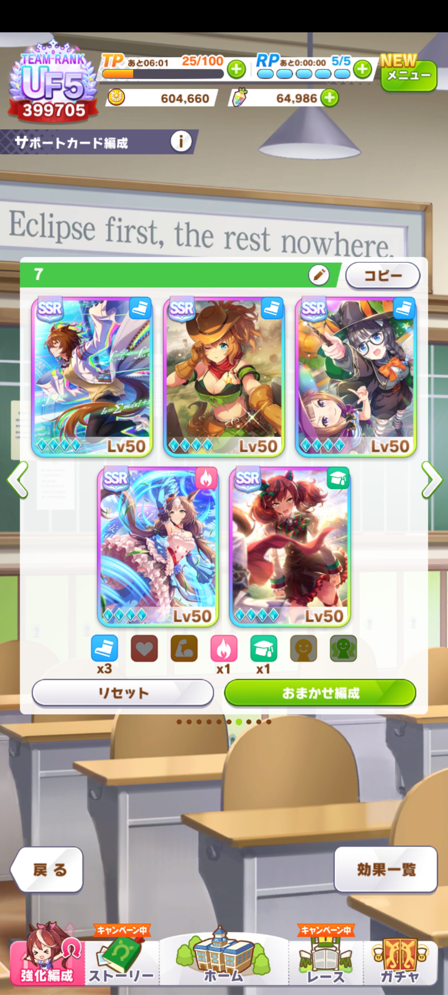 後はCB、スタミナセイちゃん、スズカさん、ファル子が3凸で王手