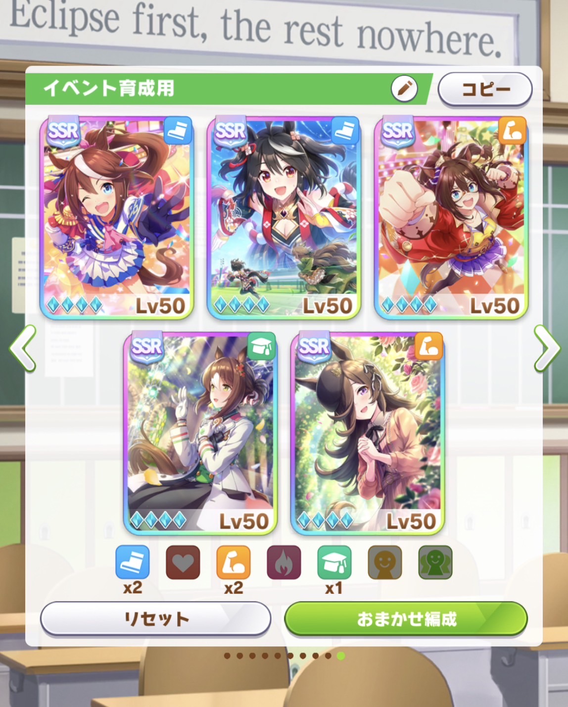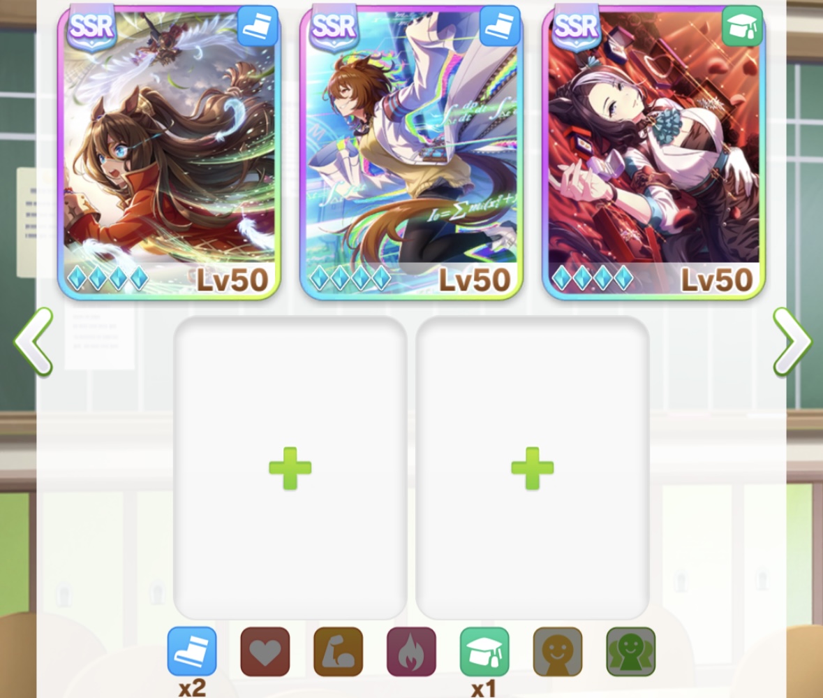 逃げに脳を破壊されたトレーナーなのでスピマルと賢ブルボンは気合いで凸 逆に逃げばっか育てるからオペとかポッケやカフェはスルーできた