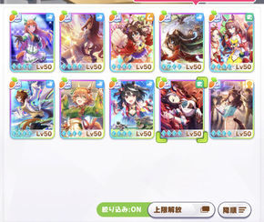 キタサン、ラモーヌ、クリーク、水マルが凸数四天王っポイかな? ファインも多いけど。ネイチャそこそこ凸いるのは半周年だったからかな