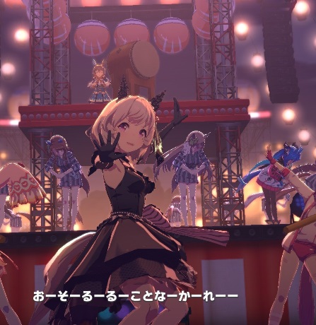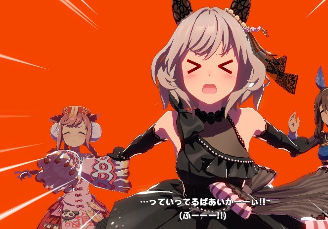 あ、アヤベさんはカレンチャンが無事結婚出来る様に応援に駆けつけ、結婚後は結婚式でのお祝いのトレセン音頭を一緒に踊っているという設定です。