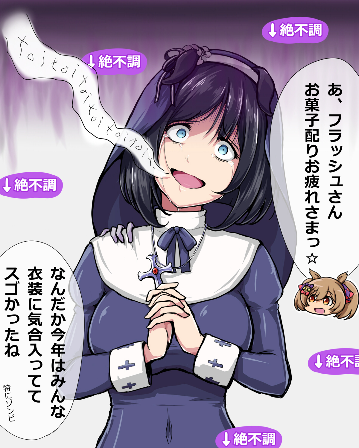 ハロウィンに向けてシスター衣装でなにかを祈っていたエイシンフラッシュ