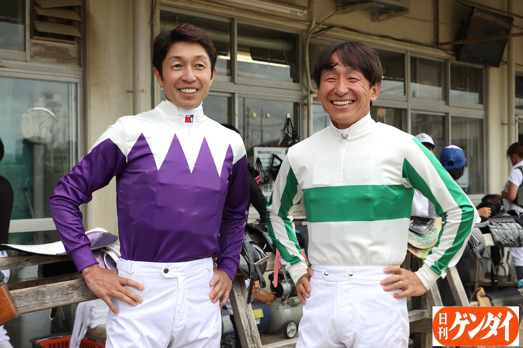9月14日の園田競馬場で武豊騎手と横山典騎手がウマ娘のモデルになった馬の勝負服の柄で登場