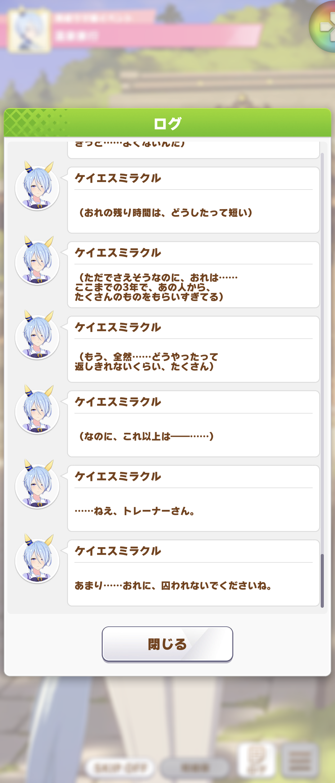 ヘリオスの場合、トレぴが自分のこと大好きで、その上でめっちゃ頑張ってくれてることをちゃんと理解した上で、ガッツリそれに甘えてるし、この先もずっと甘える気満々