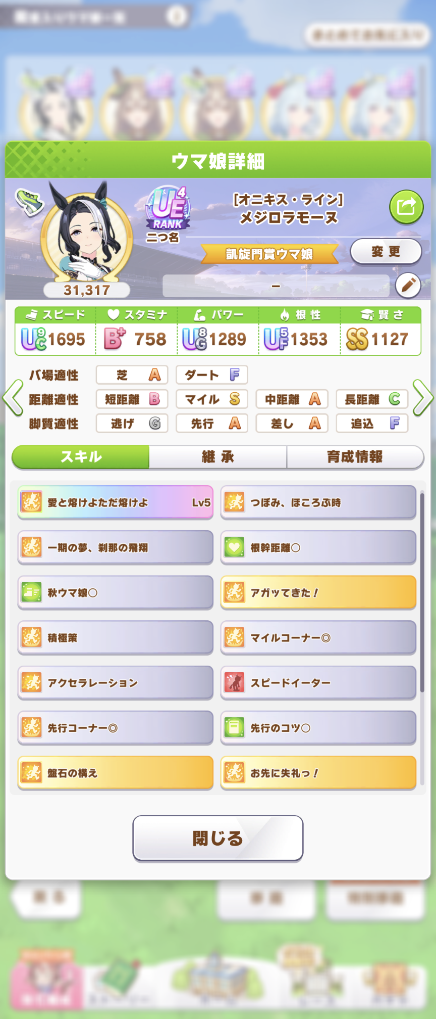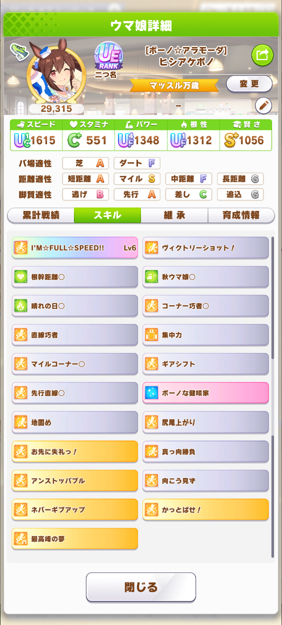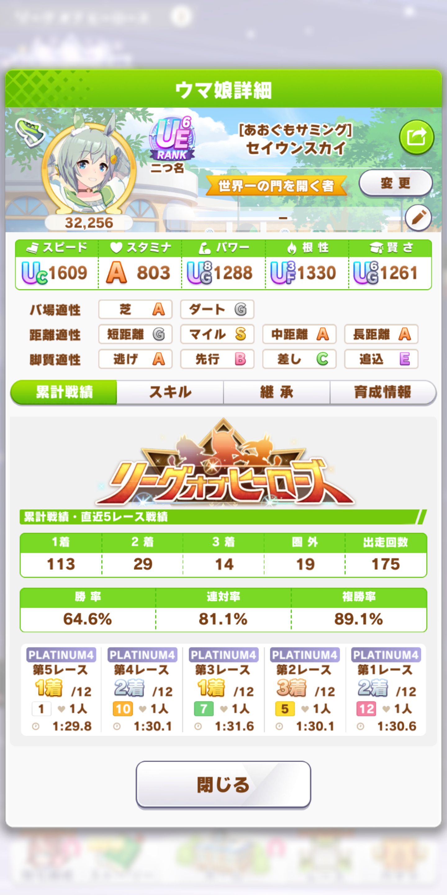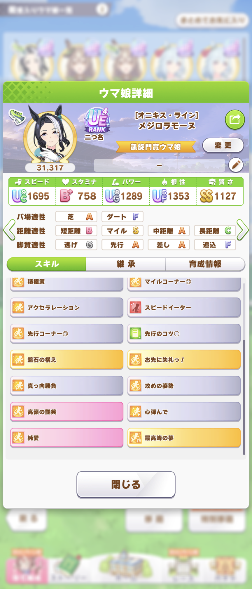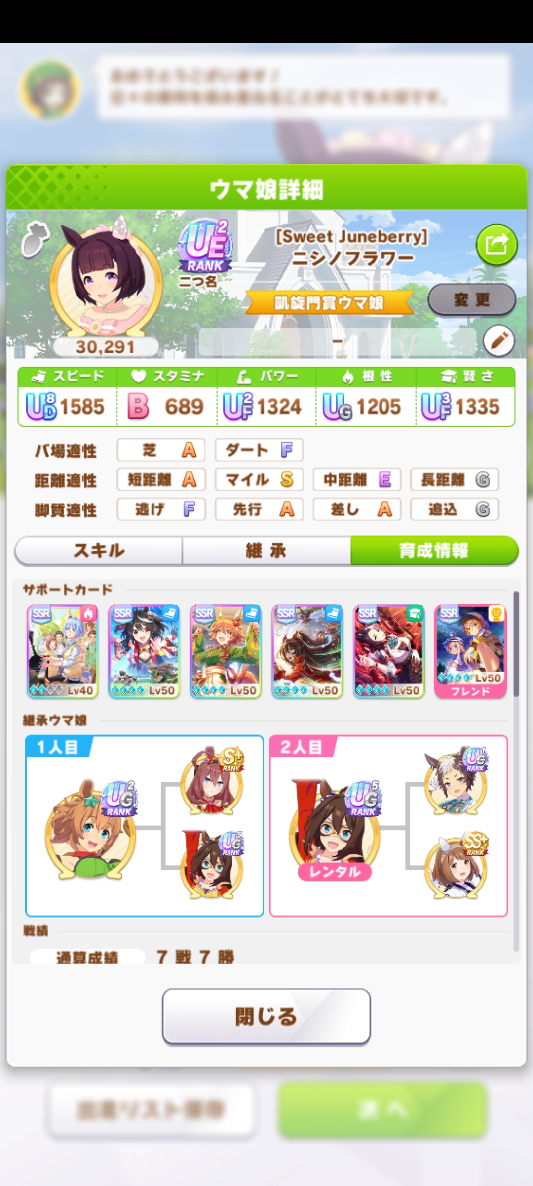 チーム内で一番評価が高いUE3のフジが一番勝ててないとは・・・ウマ娘は難しい。