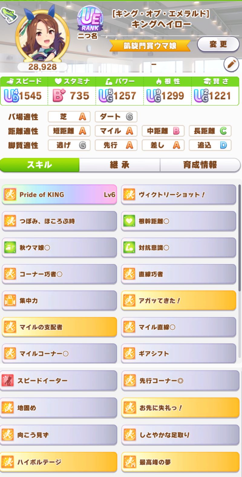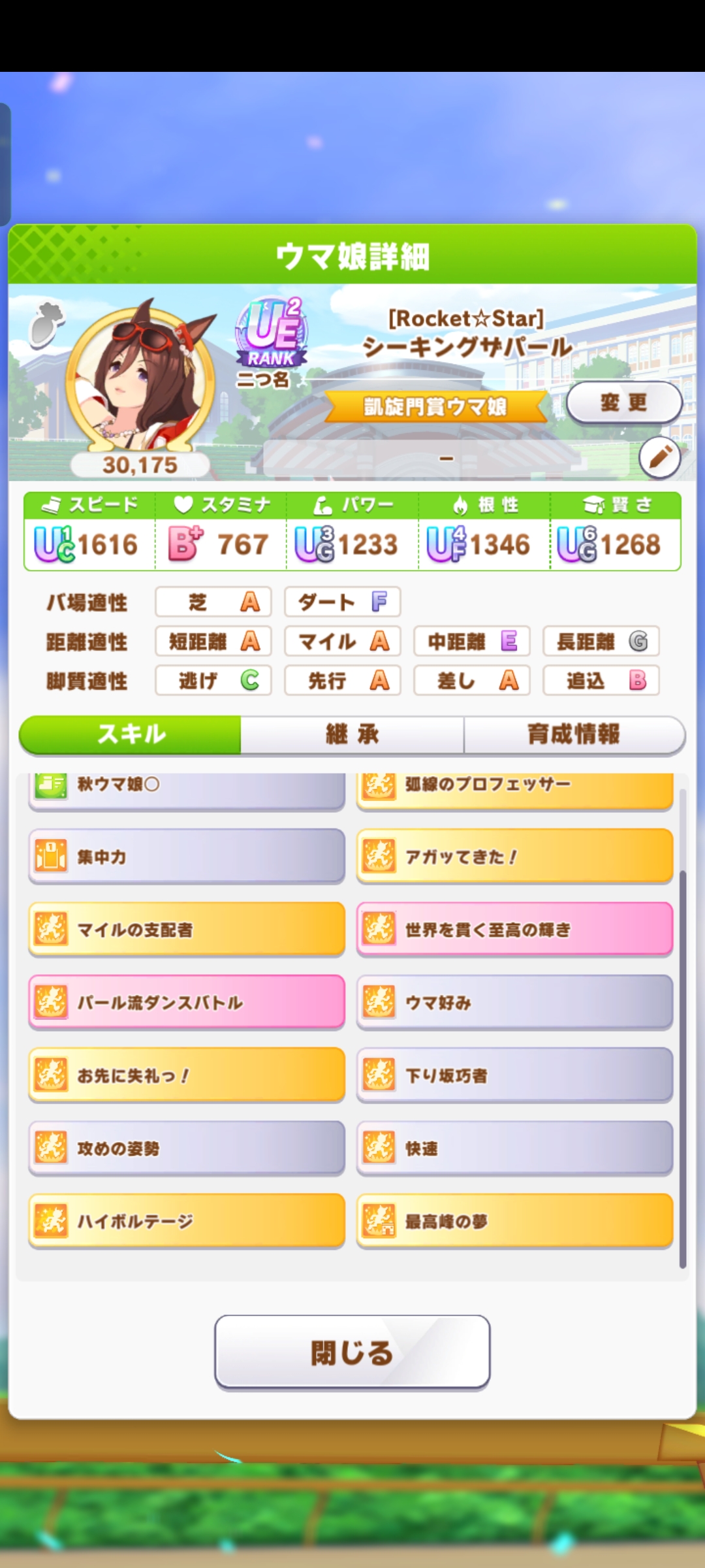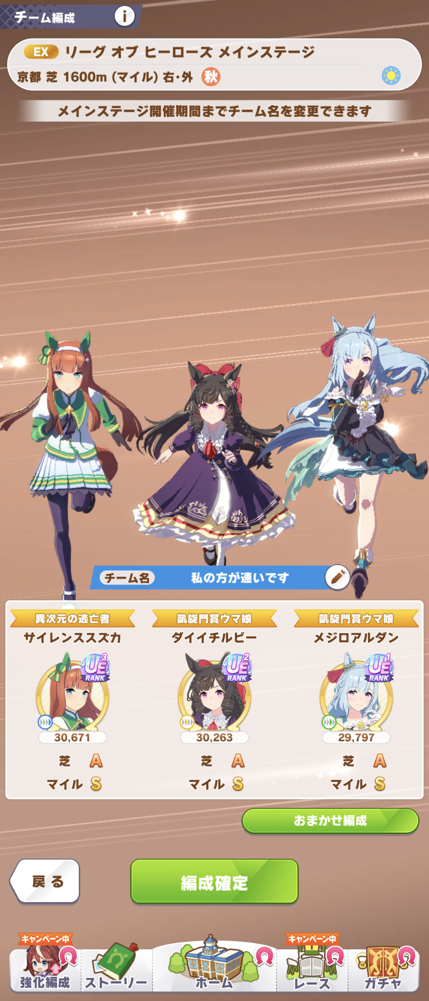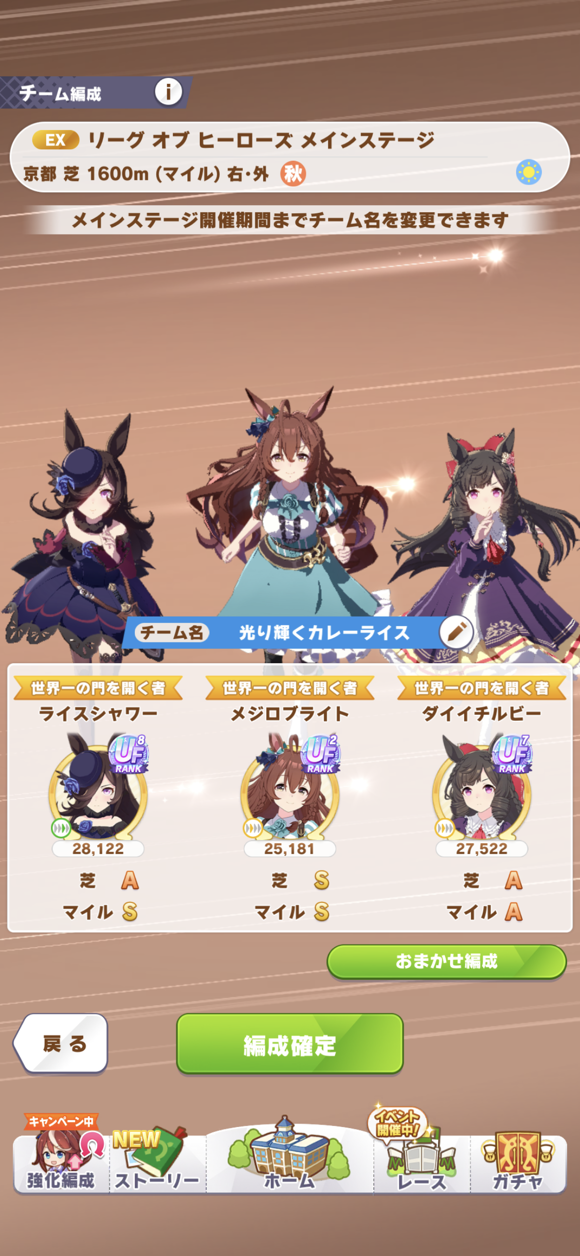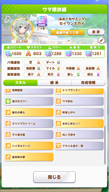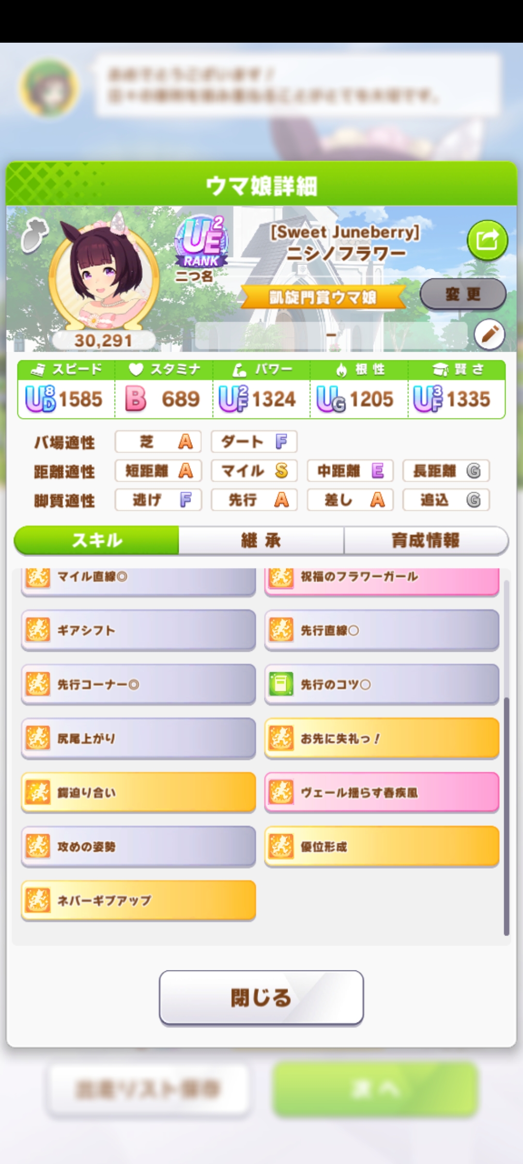 チーム内で一番評価が高いUE3のフジが一番勝ててないとは・・・ウマ娘は難しい。