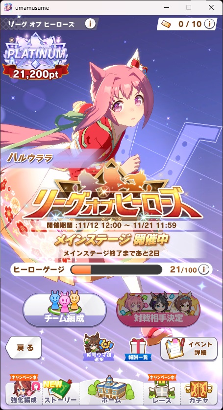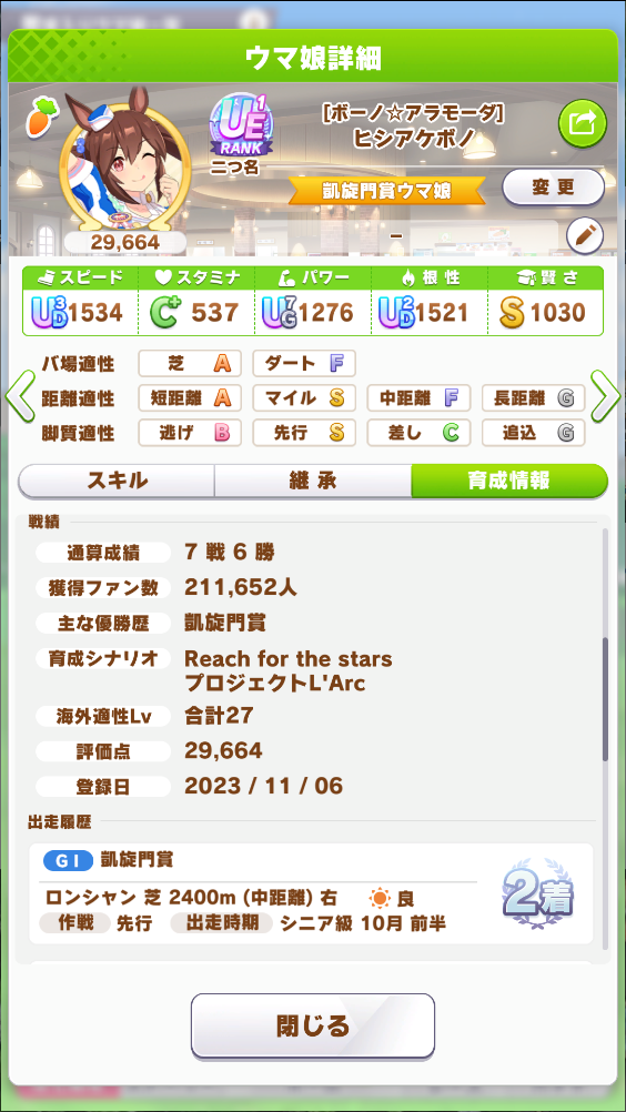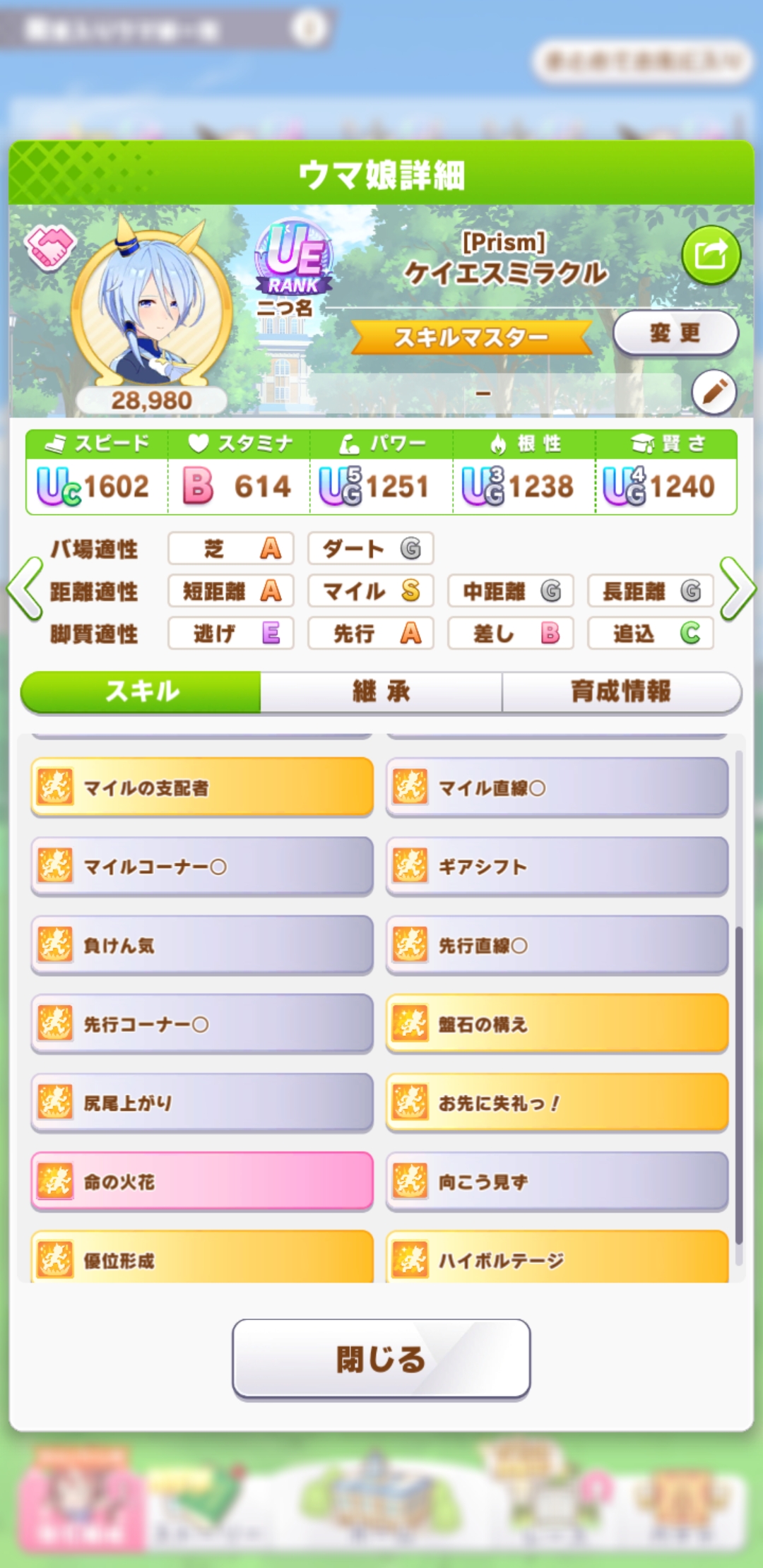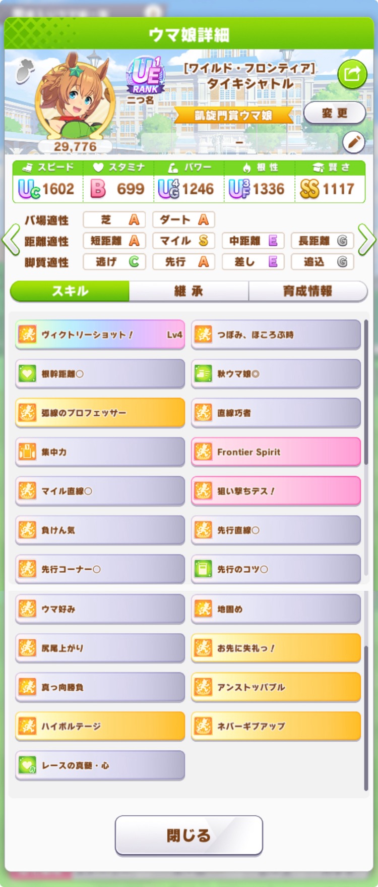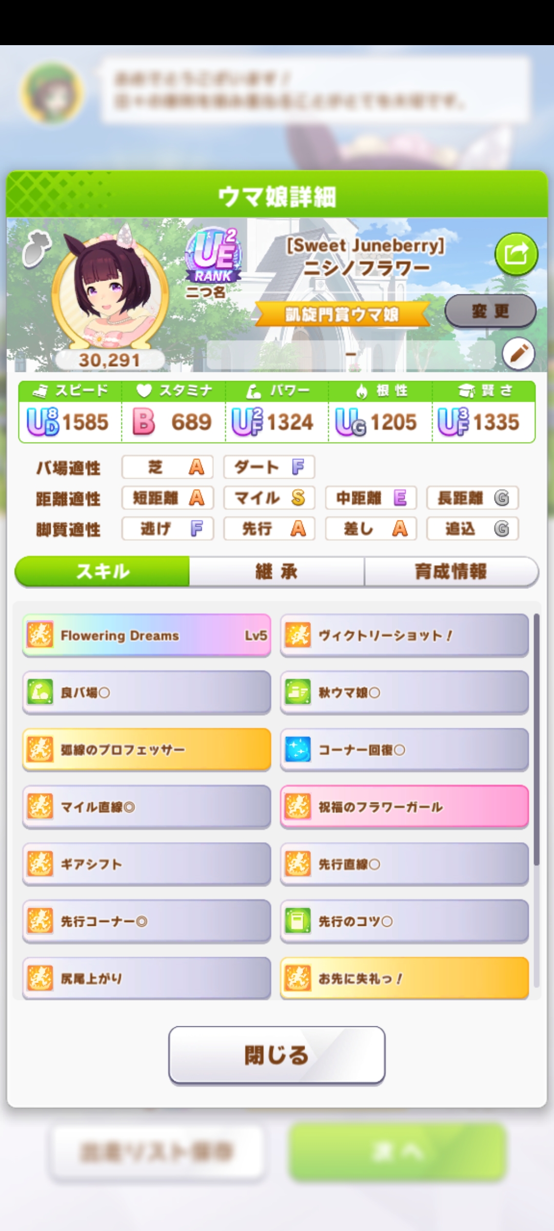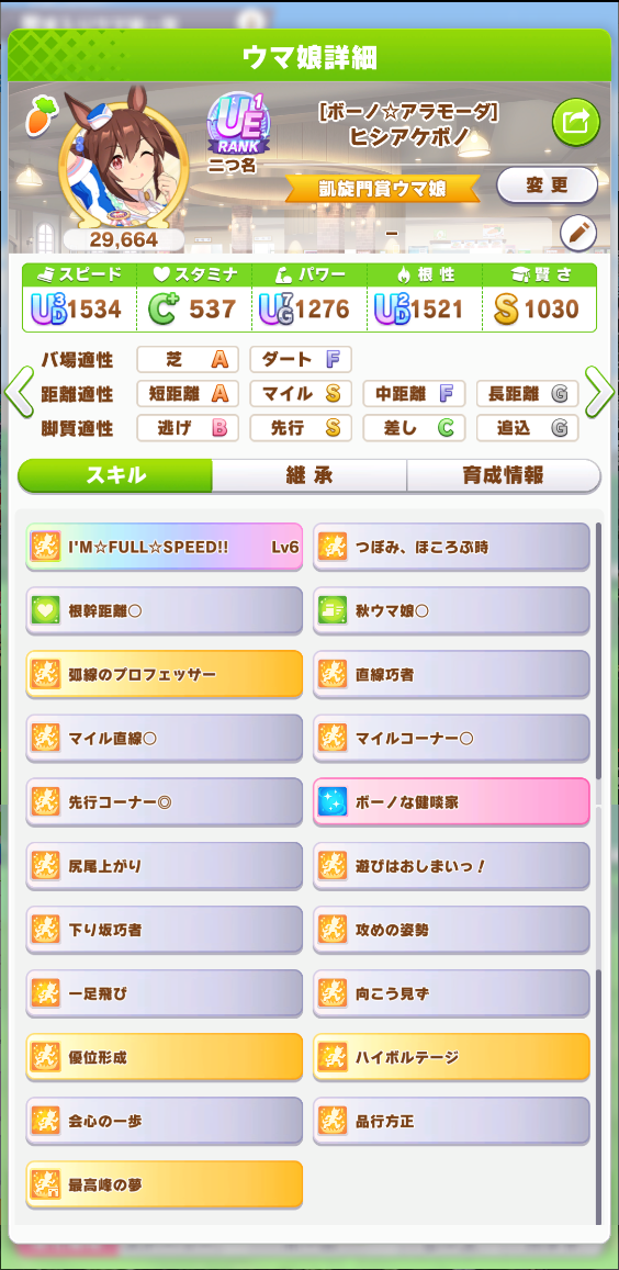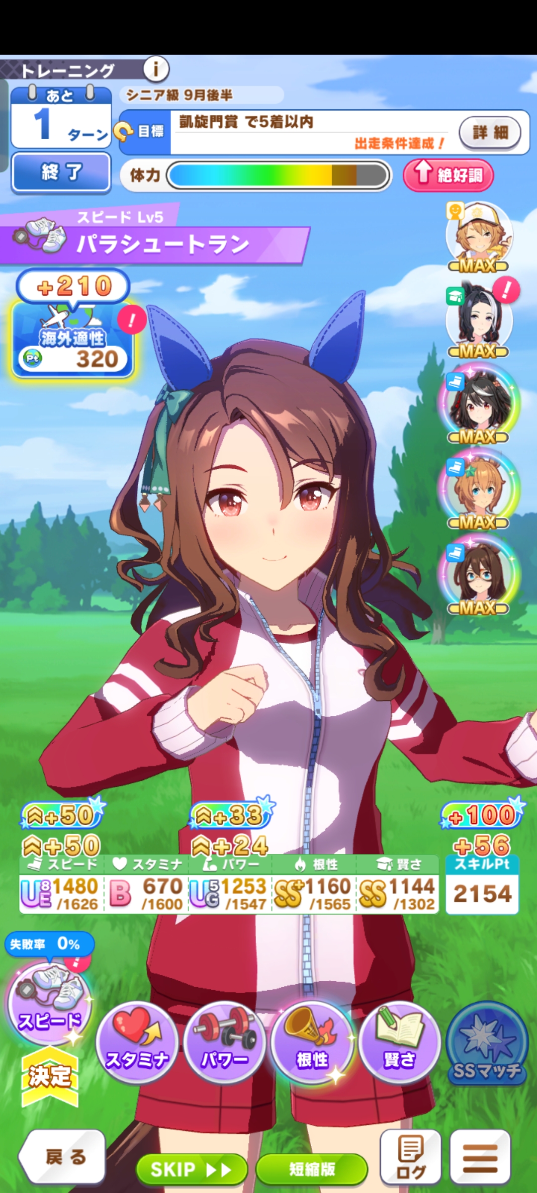 チーム内で一番評価が高いUE3のフジが一番勝ててないとは・・・ウマ娘は難しい。