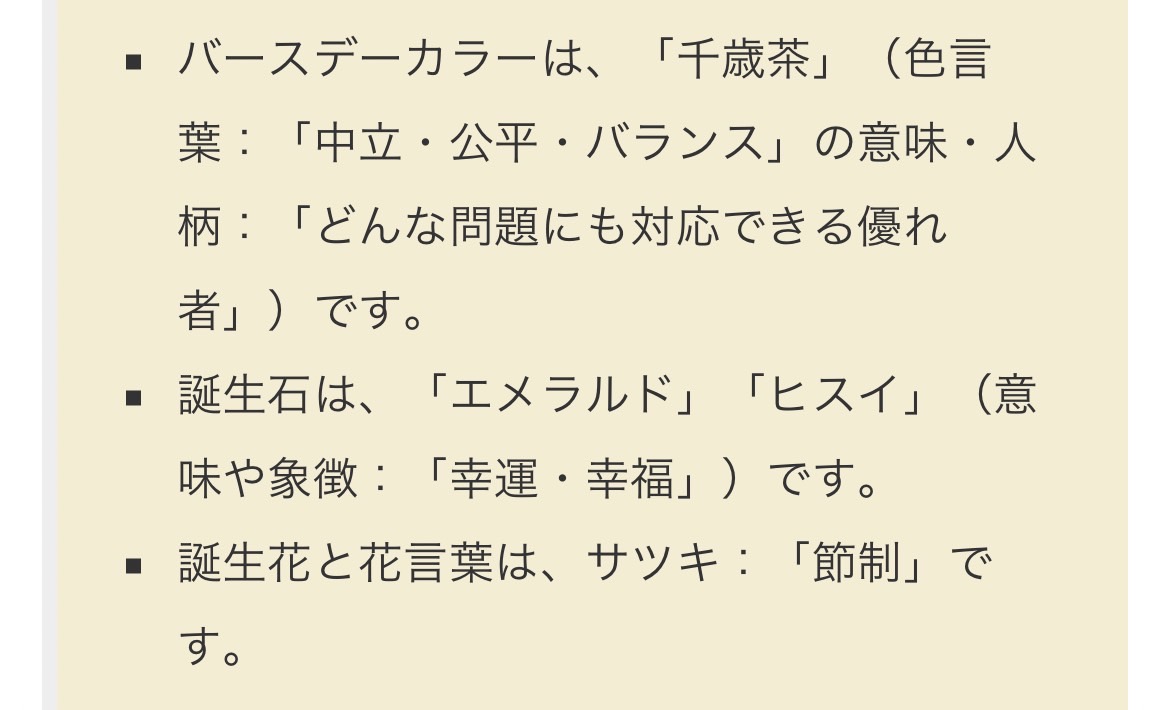 誕生日にちなんだものの意味と担当の共通点なんかを探してみようというスレ