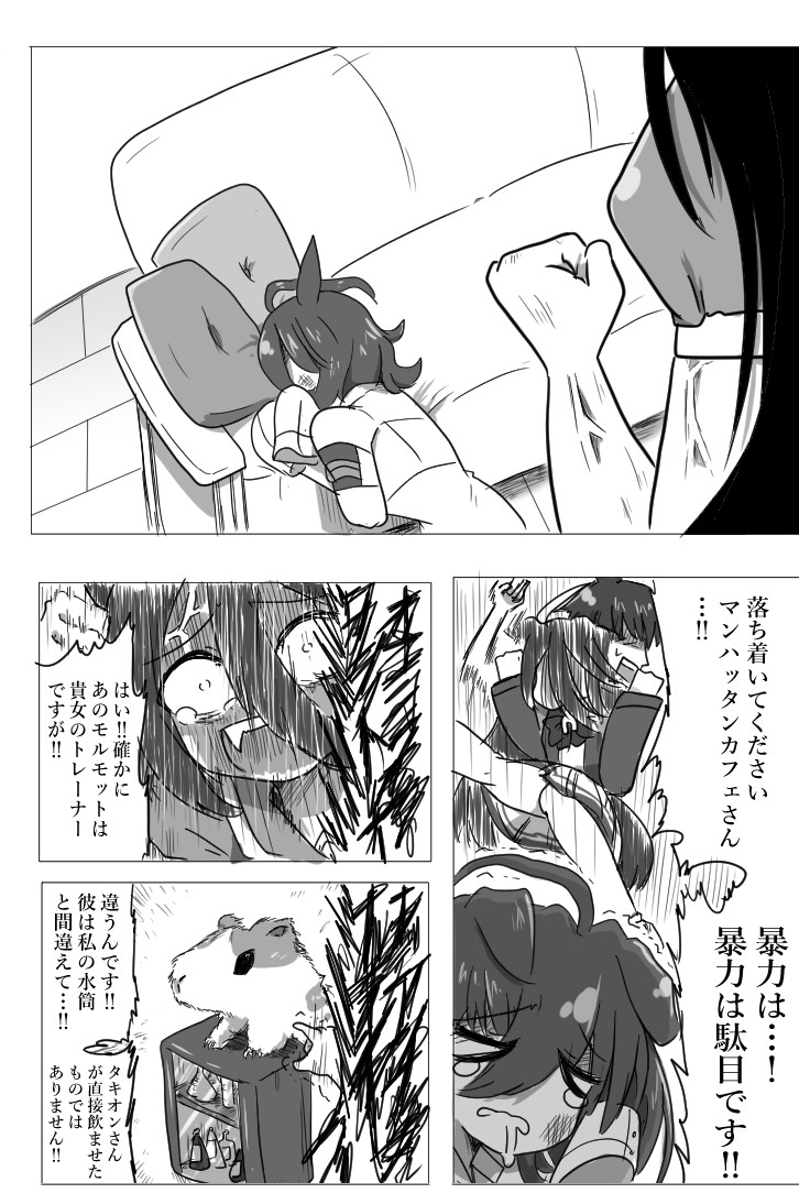 教室開けたらタキオンとカフェが取っ組み合いしてそう