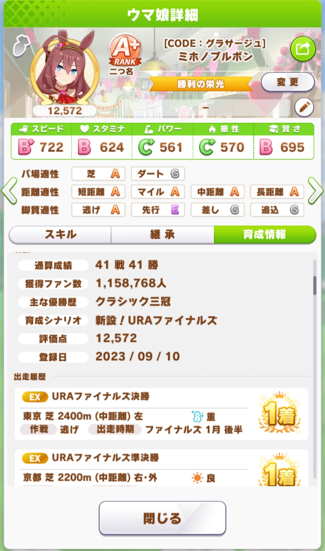 とりまクラシック凱旋門を突破できない娘はレース漬け生活させとる