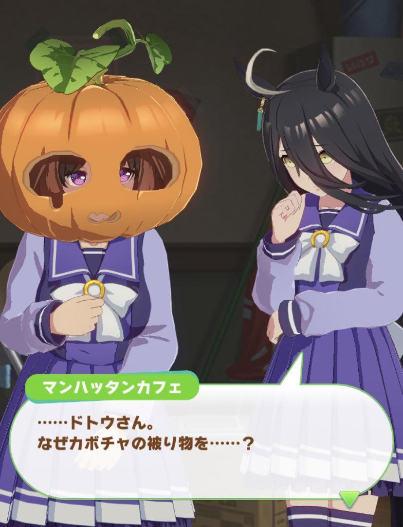タイシン「ねぇ…ハロウィンが近いからなのか分からないけど最近学園内でかぼちゃを被って徘徊してる不審者がいるんだけど。しかも頭にとかじゃなくて全身がすっぽり入るほどの巨大かぼちゃなんだけど…」