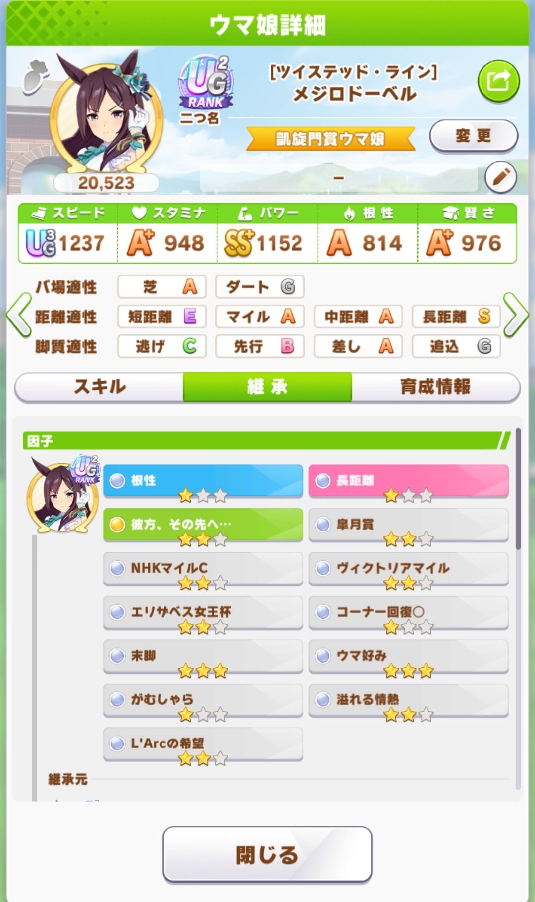 俺はパワーネイチャを軸に汎用+緑スキルだらけの因子を作ってる