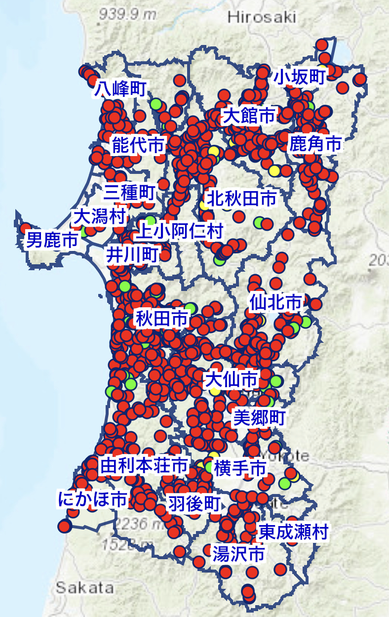 面積では西半分に見えるが実際に熊が出没してるのは山の麓だったり森林の辺りだぞ