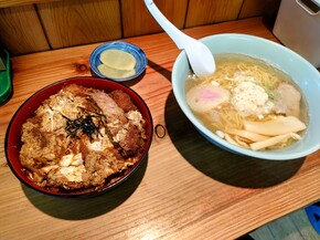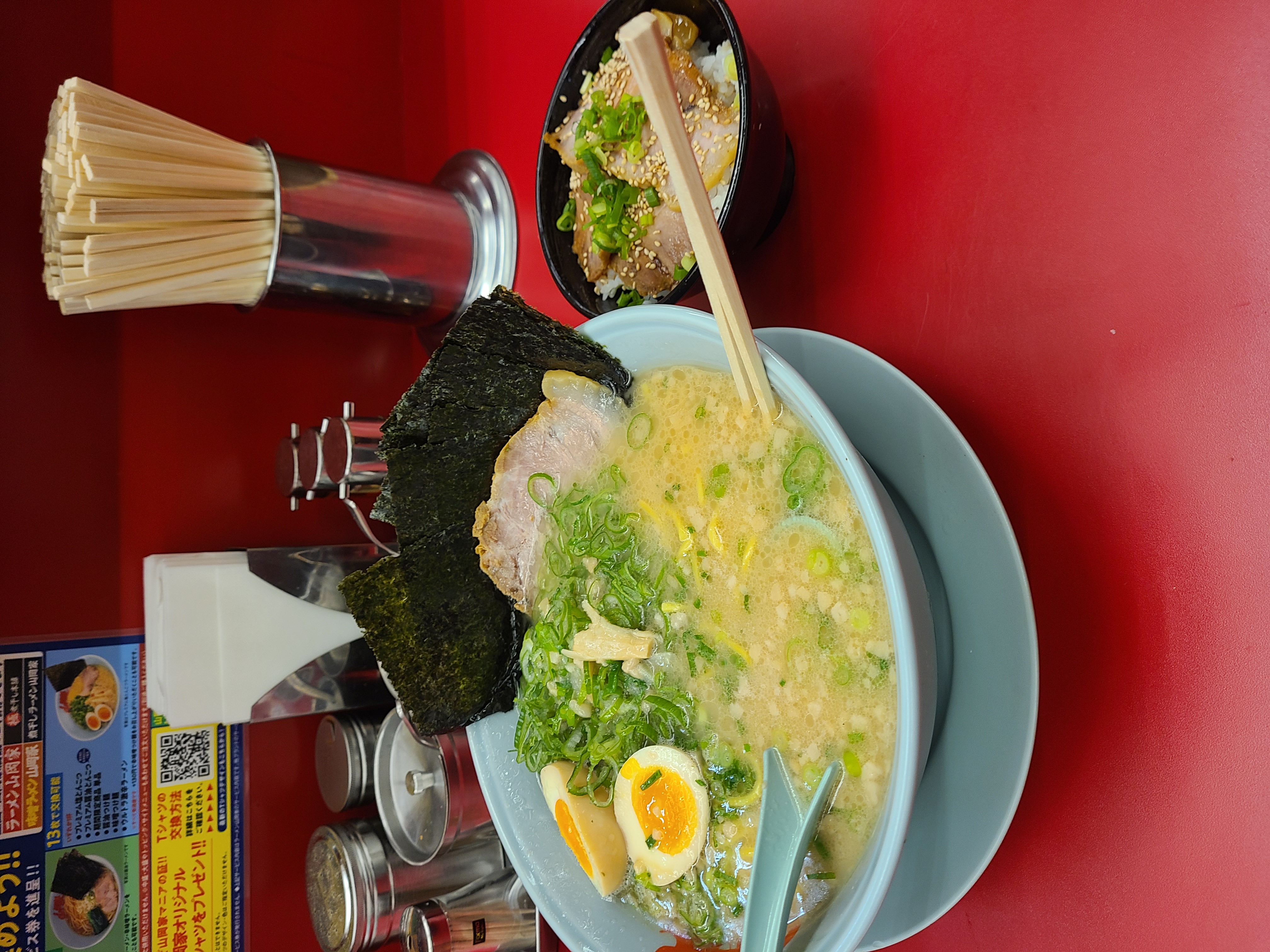 うむ、よろしい!次は私のジャスティスのプレ塩とんこつ中盛り薬味ネギ増し(ニンニクをレンゲに山盛り分追加)withチャーシュー丼を食べてみてね!