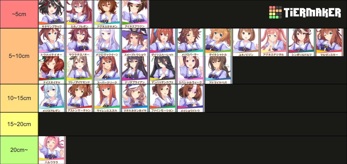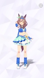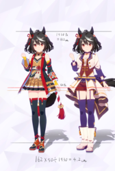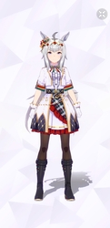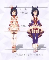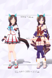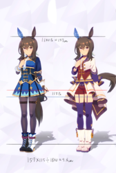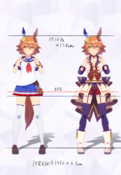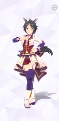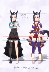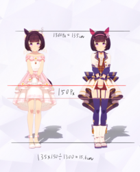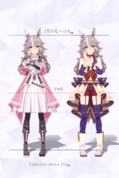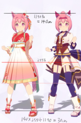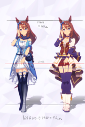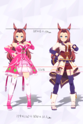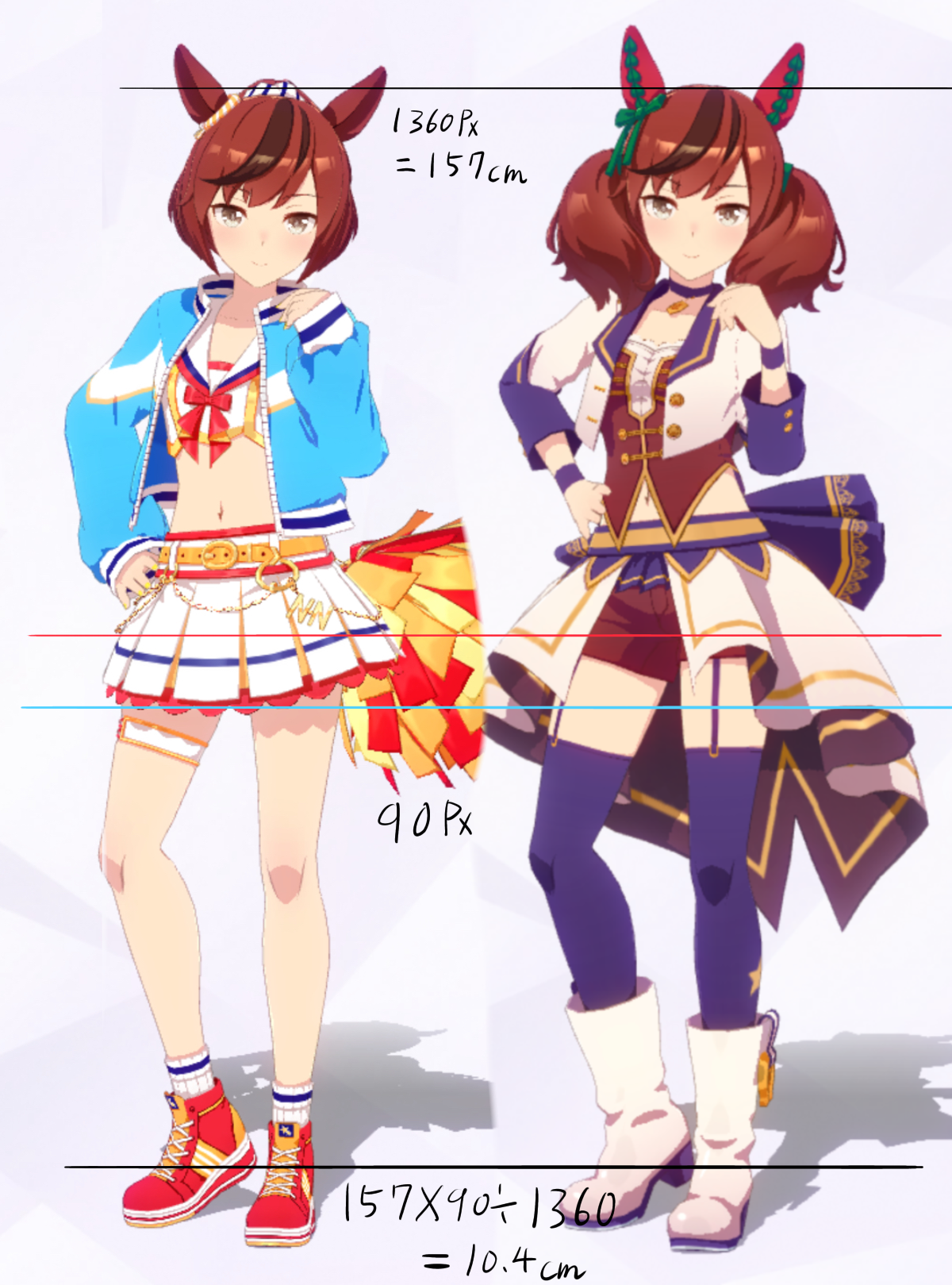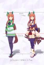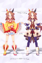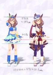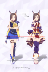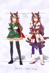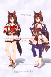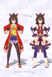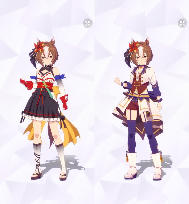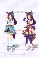 通常勝負服測る時身長の取り方ずれてて短く出てたかもしれない。実際にはチアも通常もスカートの長さはほぼ同じ。