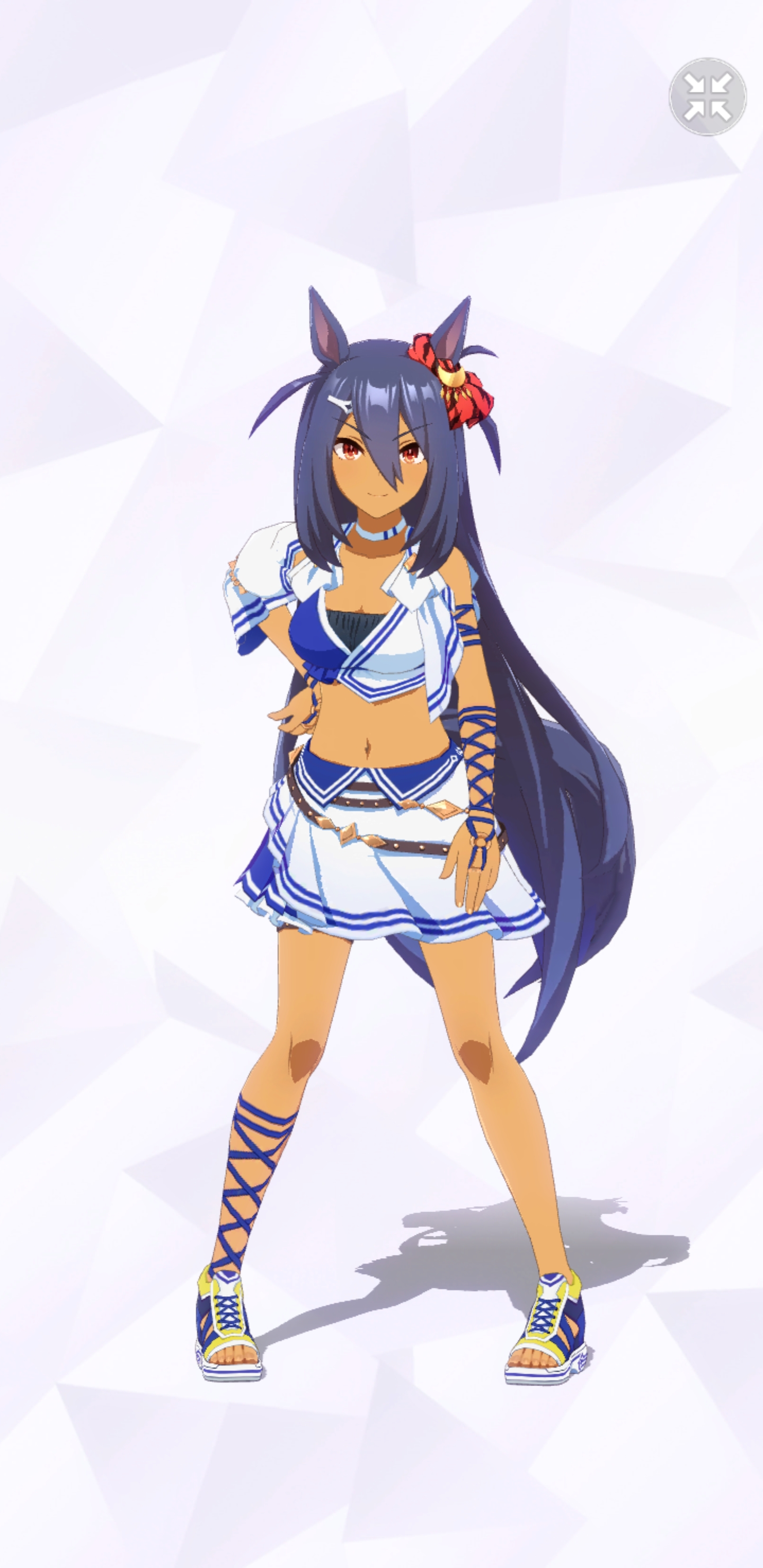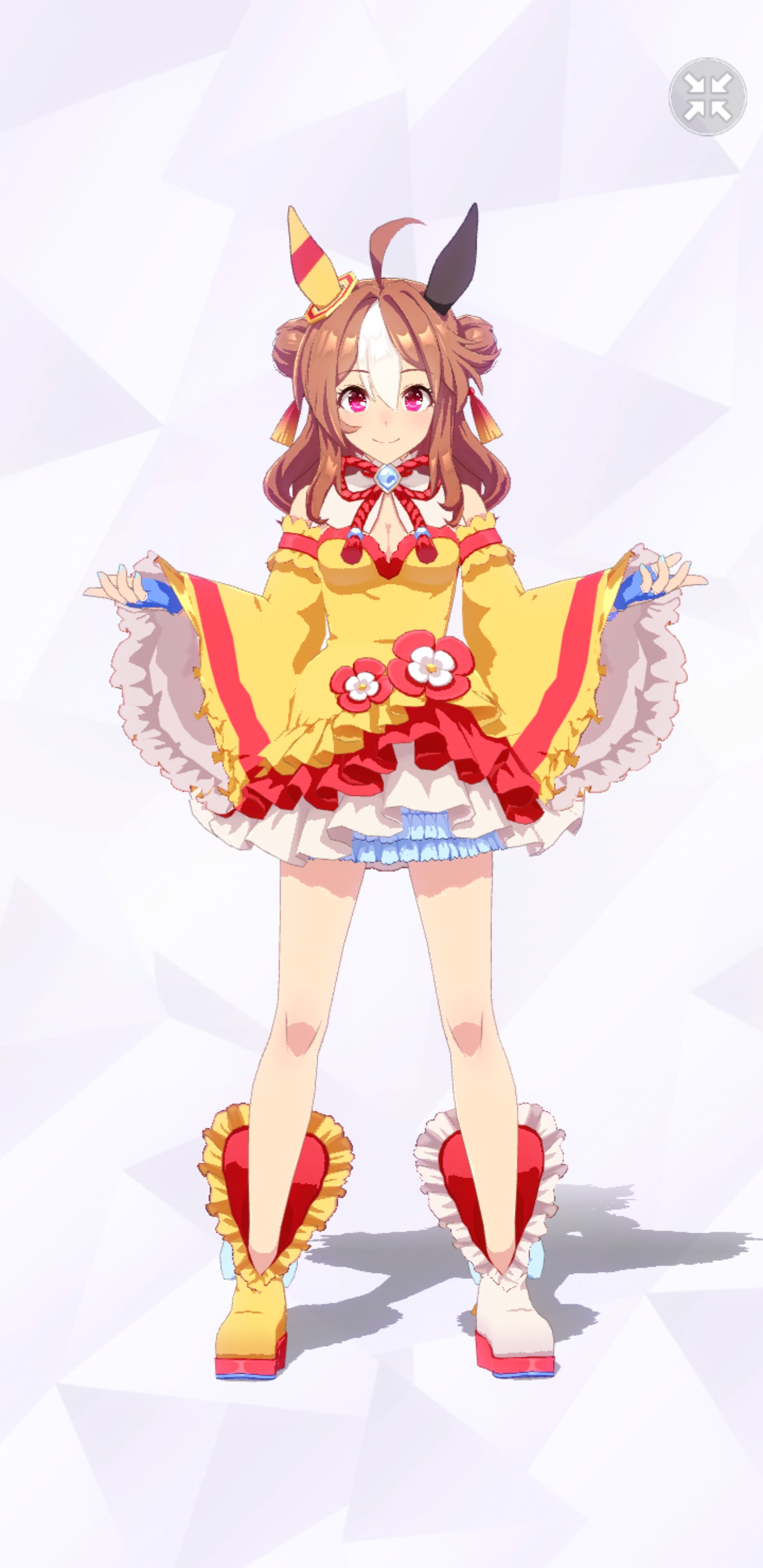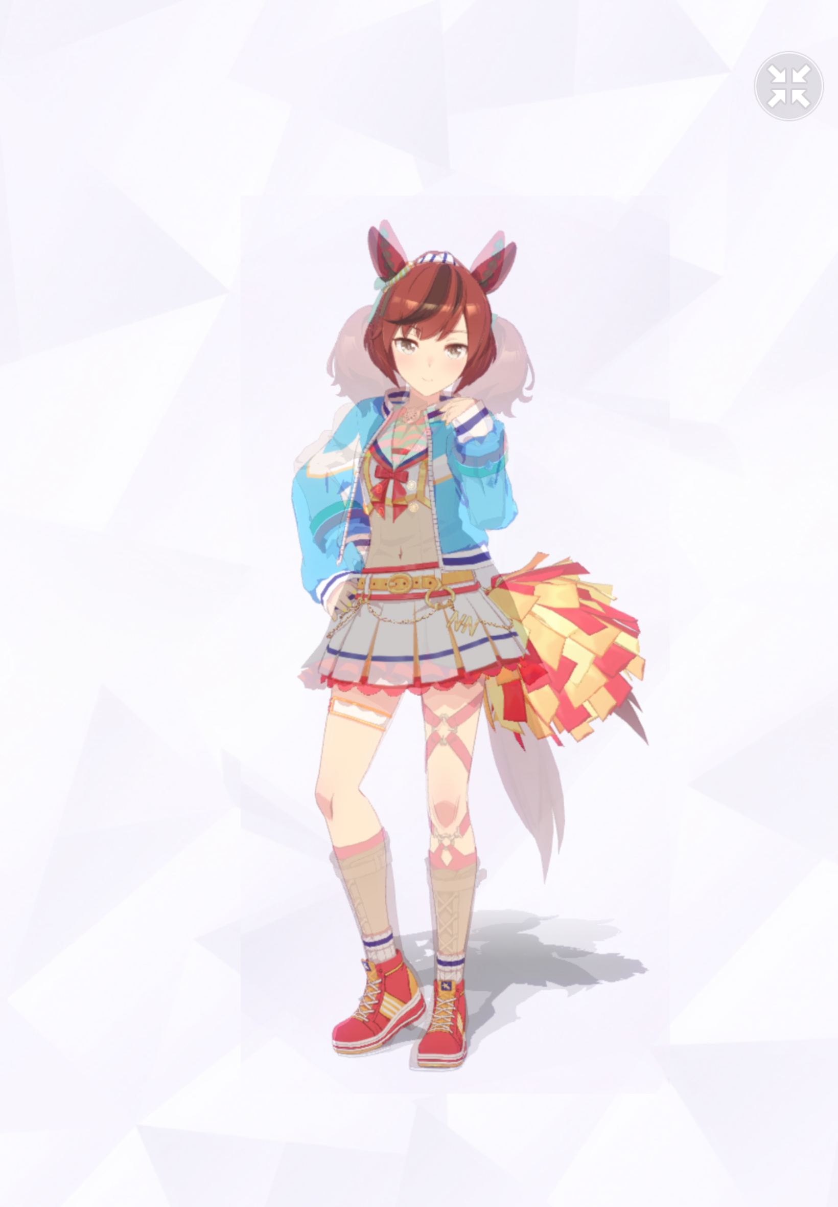 通常勝負服測る時身長の取り方ずれてて短く出てたかもしれない。実際にはチアも通常もスカートの長さはほぼ同じ。