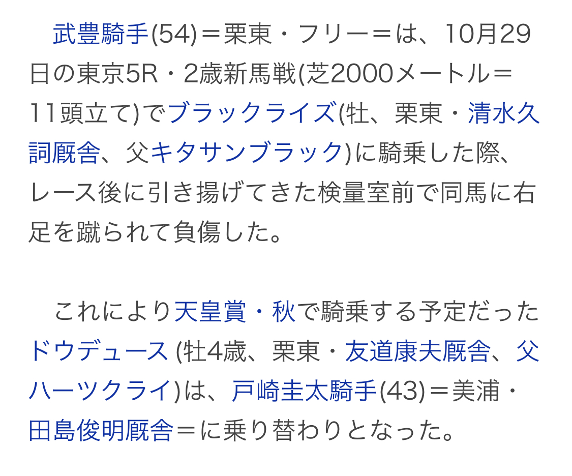 まぁ武豊が何事もなければ1位はバケモン過ぎて論外だとしてももしかしたら掲示板、馬券内の可能性はあったのかなってのは思う