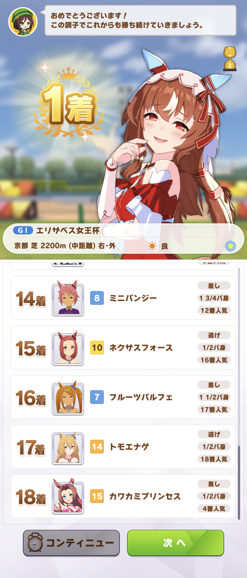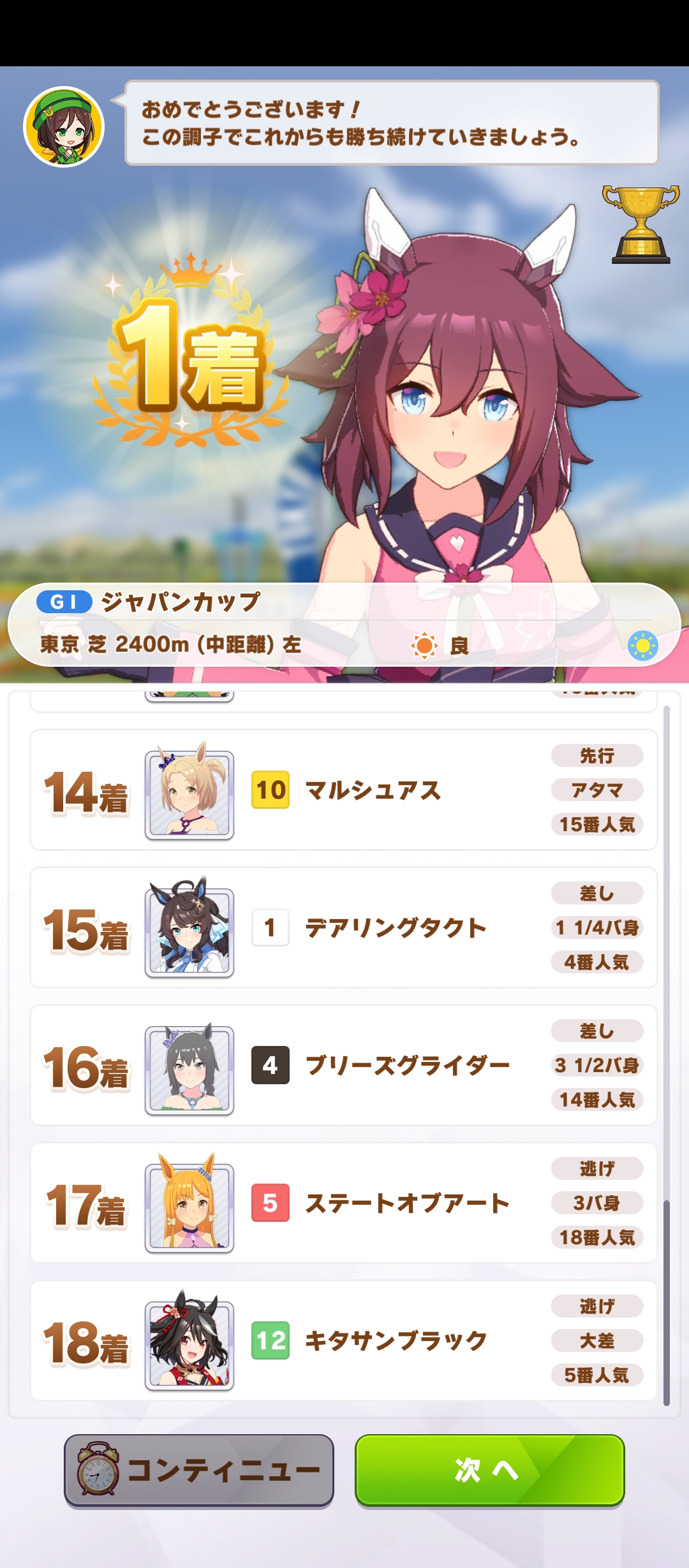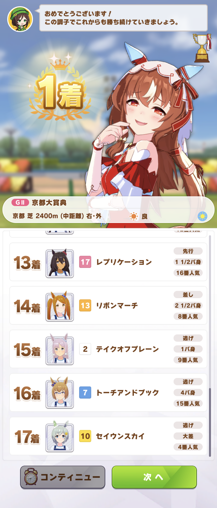 マルゼンスキーに大差で勝ったぜヒャッホイと思ってたら、ポツンとキタちゃんが悲惨なことになってた