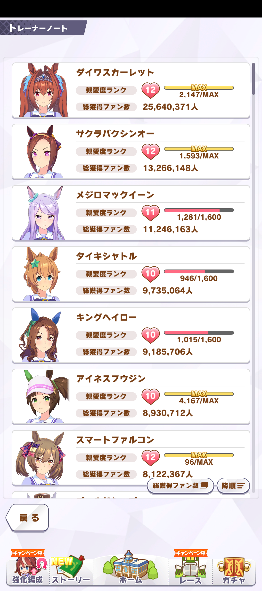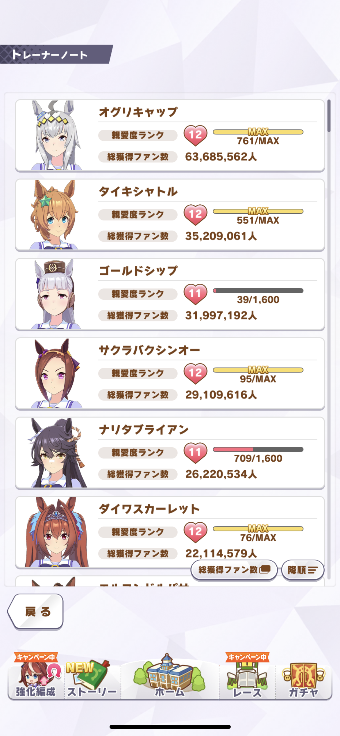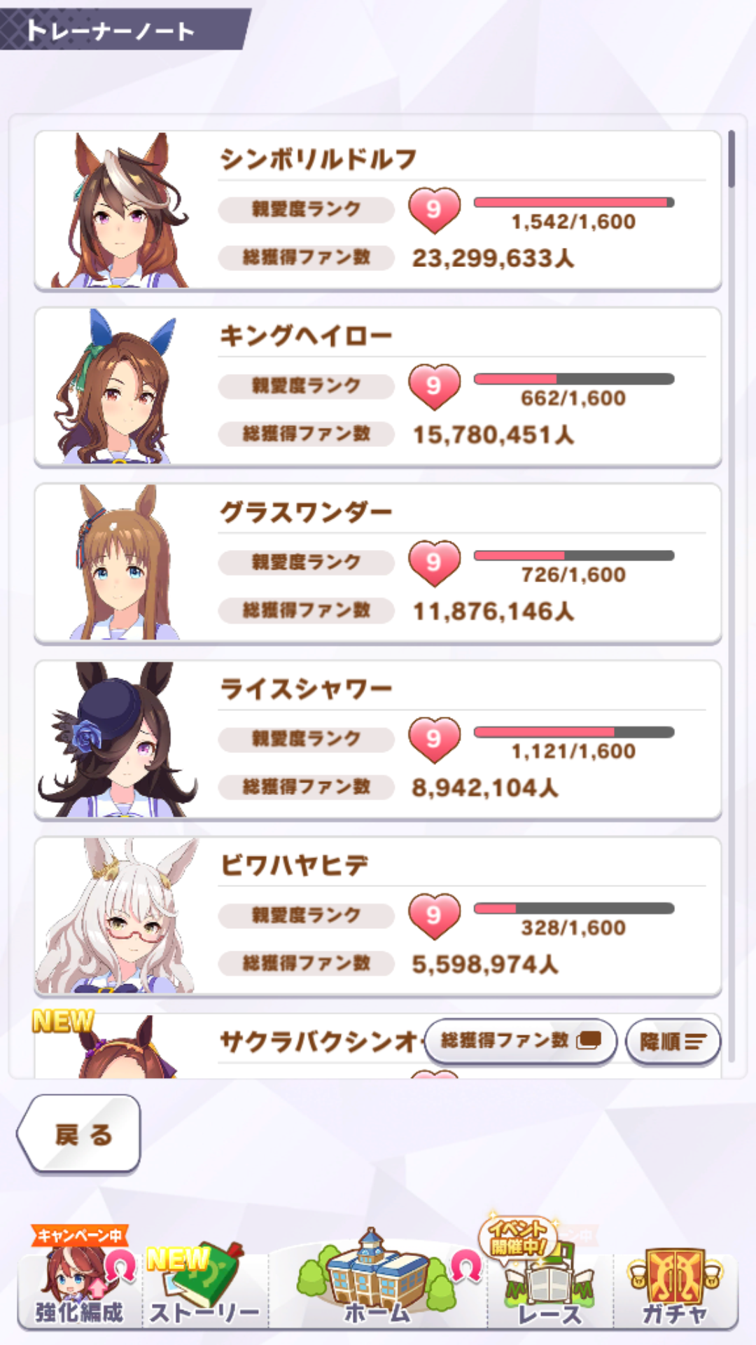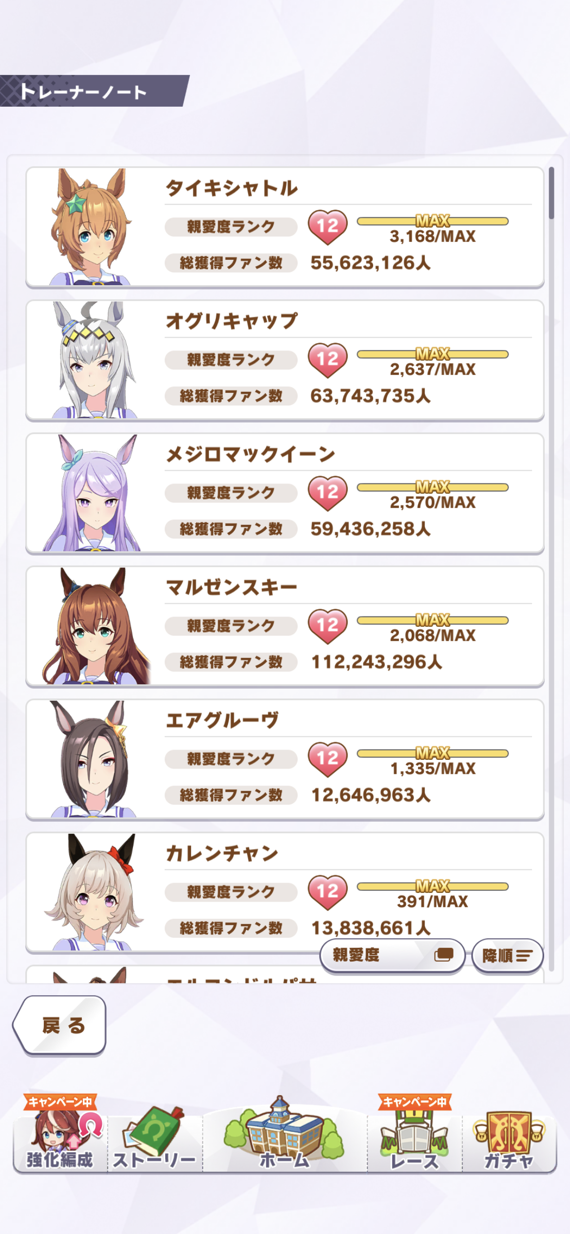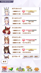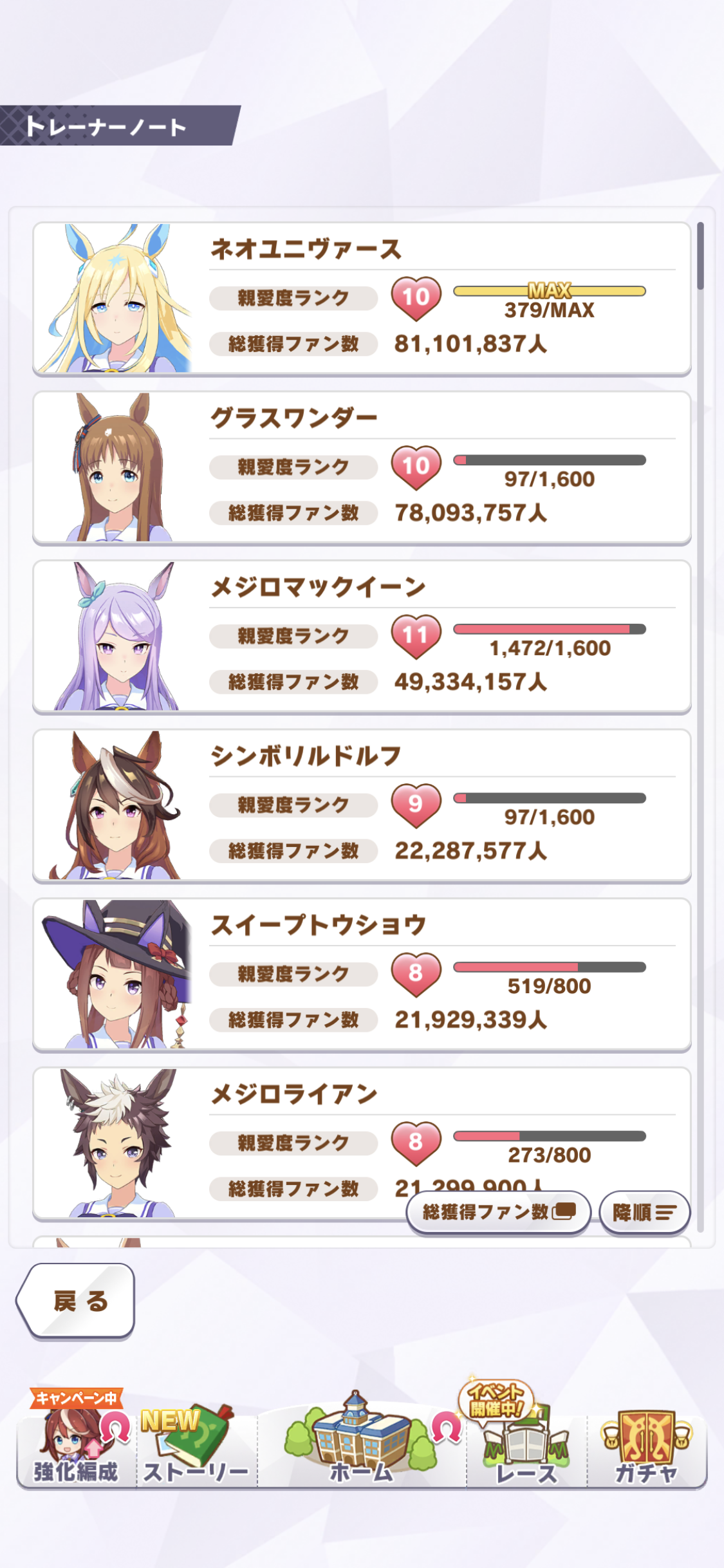 あとファン数と親愛度って比例しないのね(うまさんぽとかでも上がるんだから当たり前ちゃ当たり前だけど…)