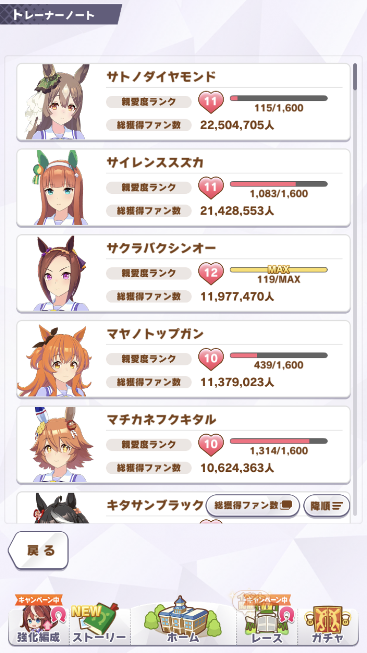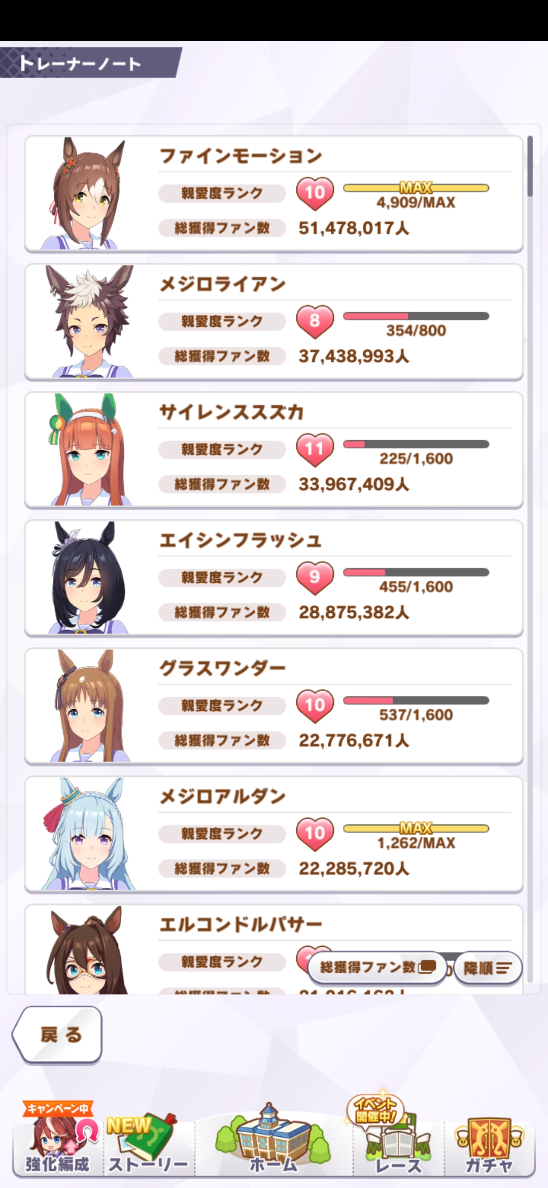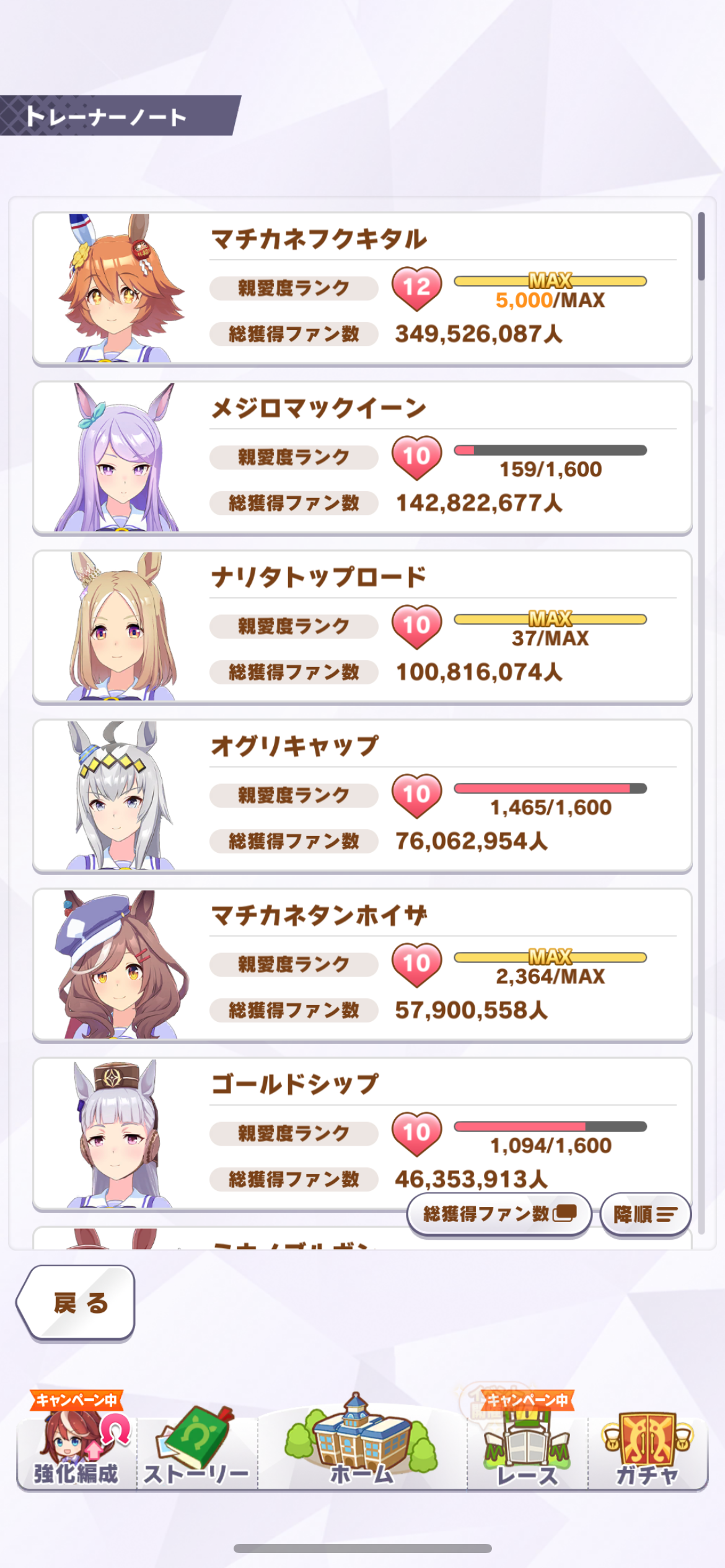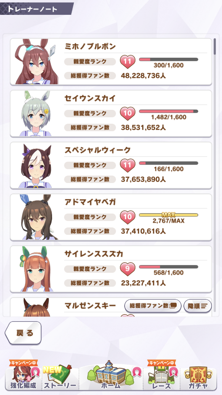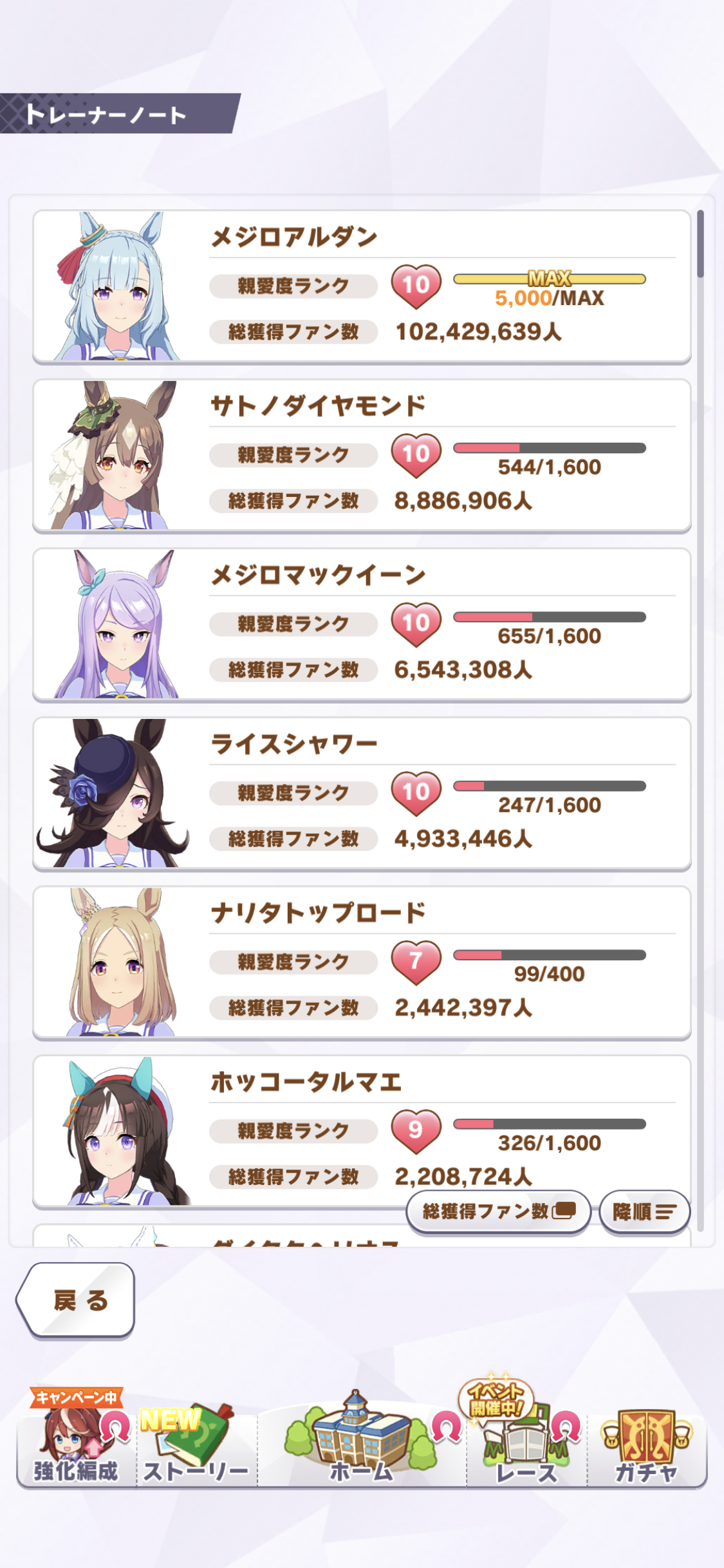 あとファン数と親愛度って比例しないのね(うまさんぽとかでも上がるんだから当たり前ちゃ当たり前だけど…)