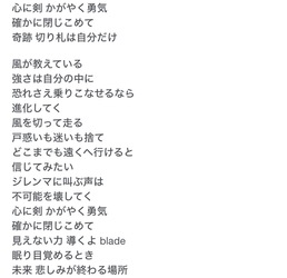 仮面ライダーウィザードのMissing pieceも育成シナリオに合いそう。「ラストは今じゃない 終わりを駆け抜け 始まりの空へ」とか