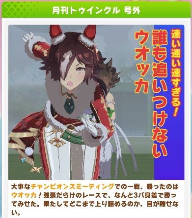 水着系を除けば勝負服の太もも率はこの子が一番だろうか