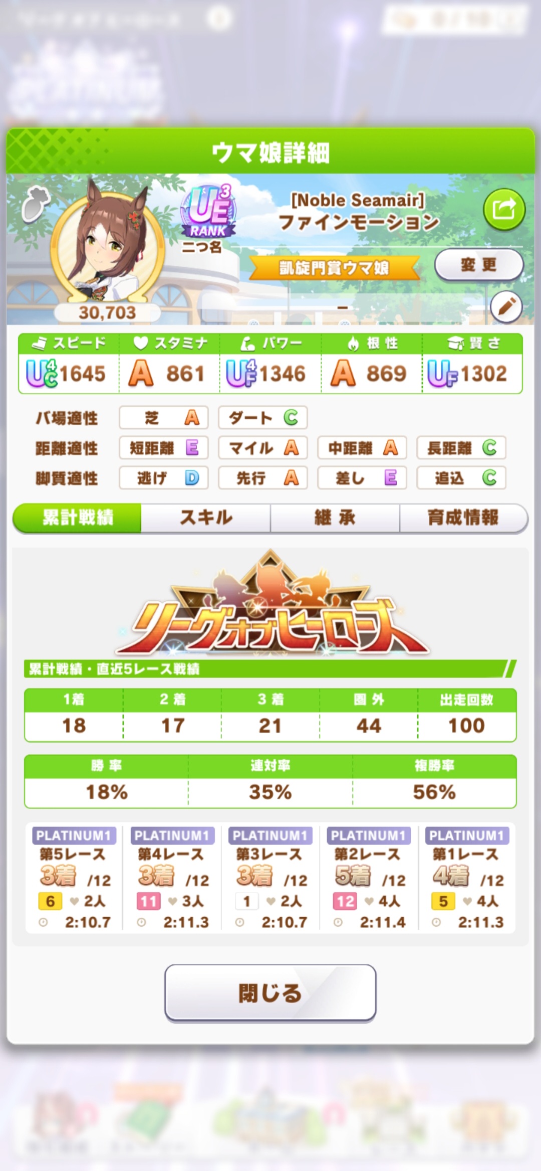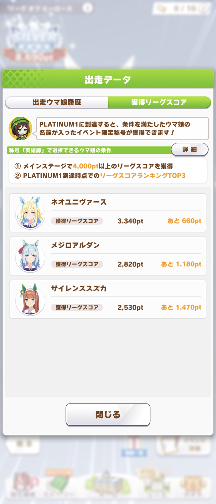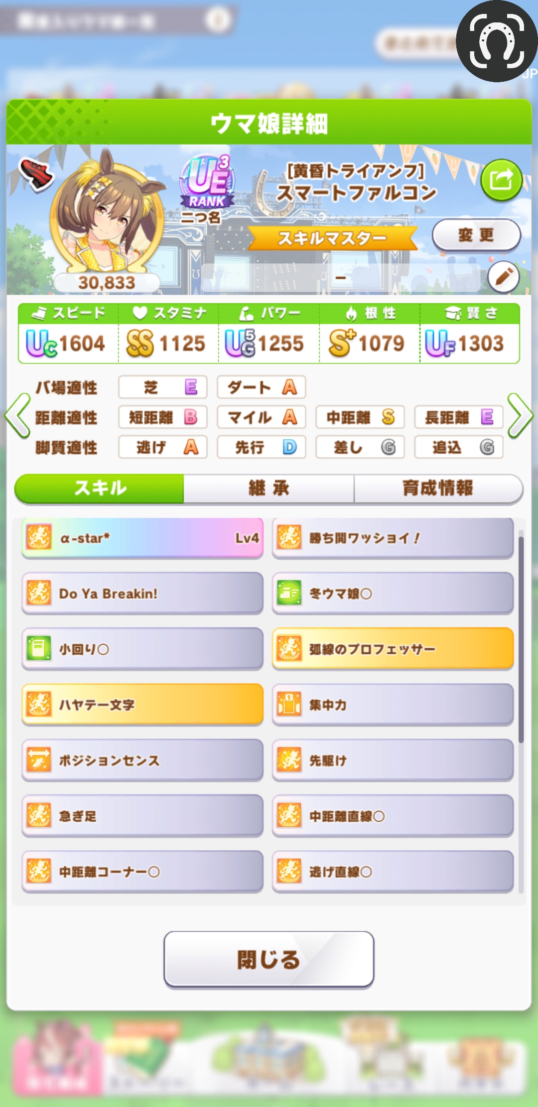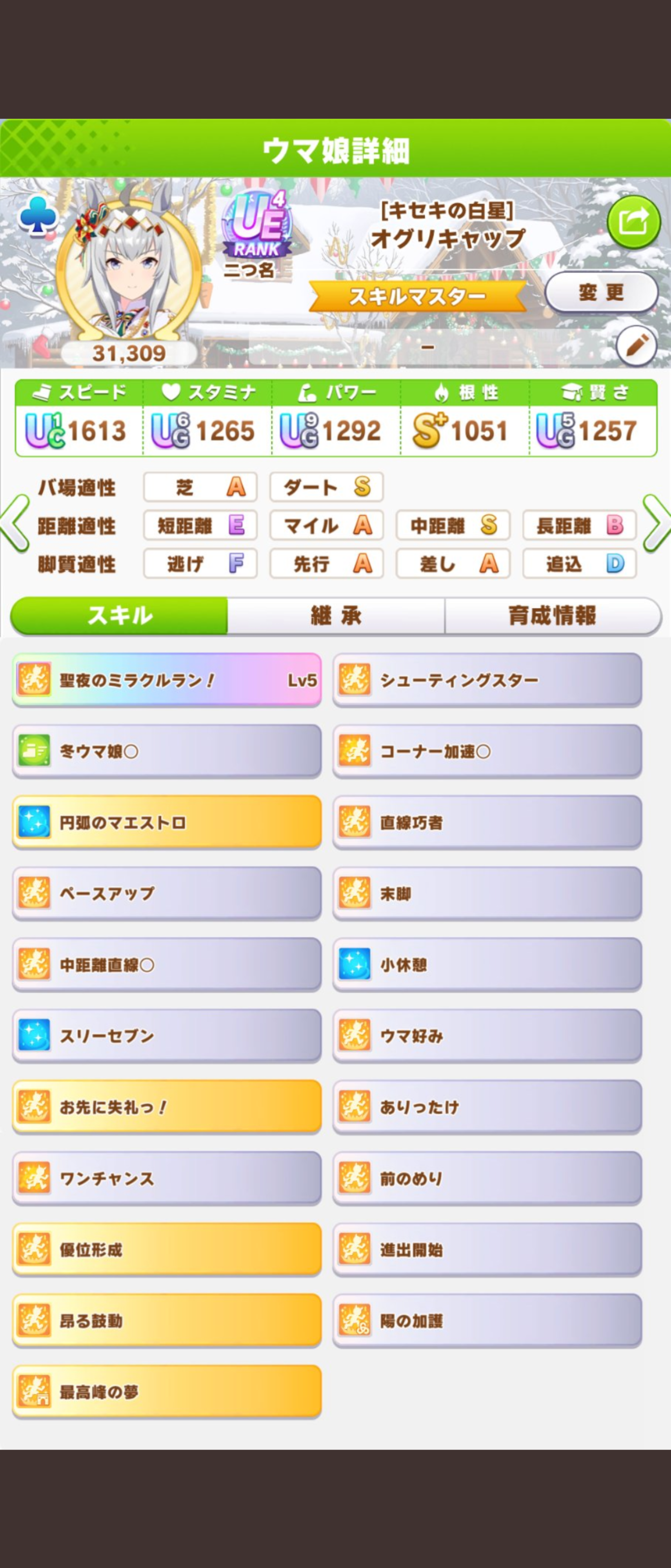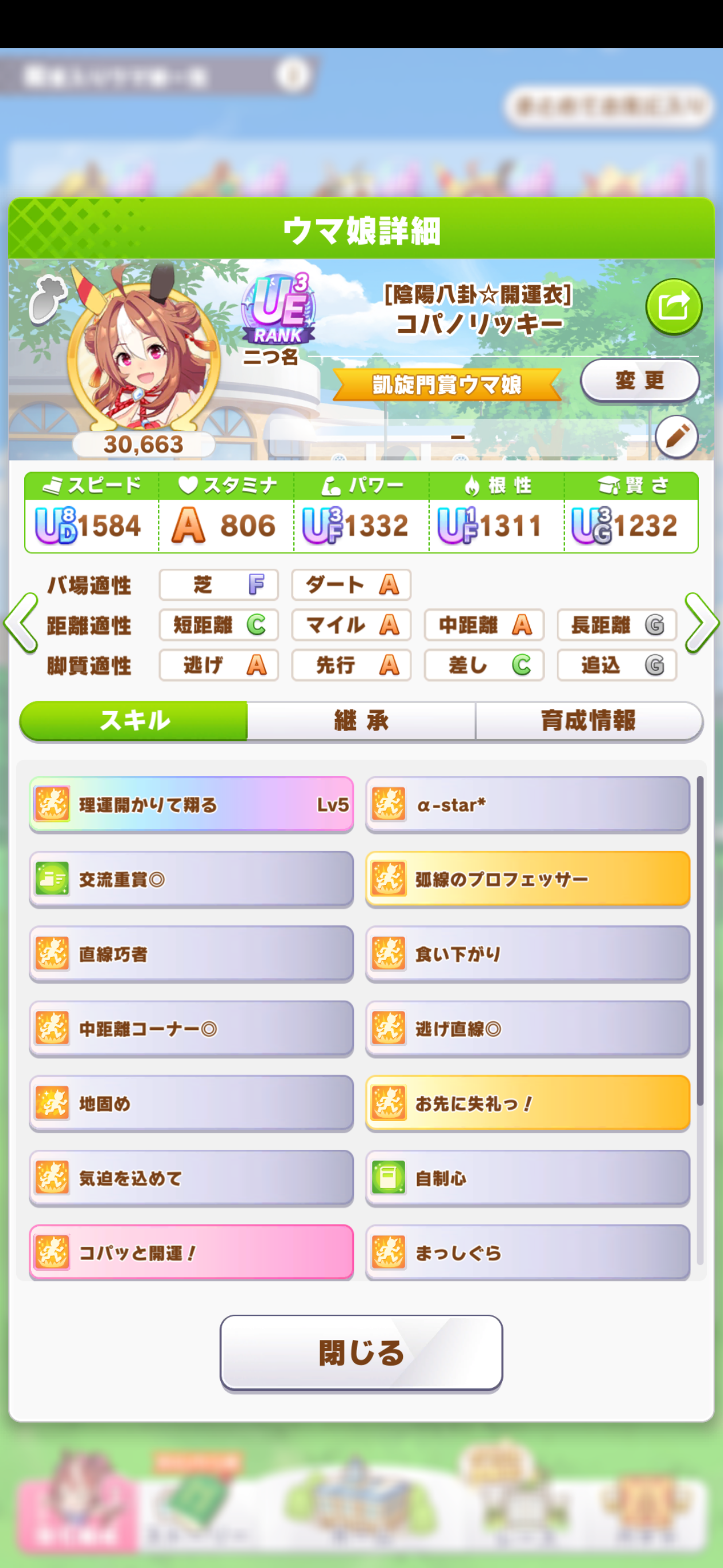 リッキーが仕上がらん…距離S付いてステも仕上がったのに緑取れねえ、スキル仕上がれば他がゴミ…