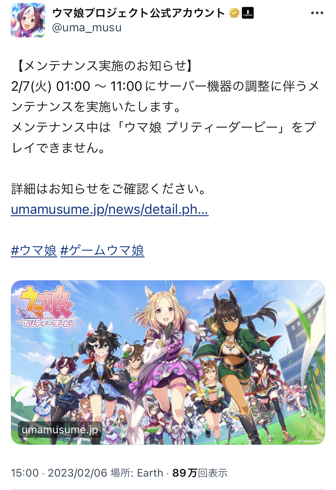 ウマ娘がメンテナンスは珍しい