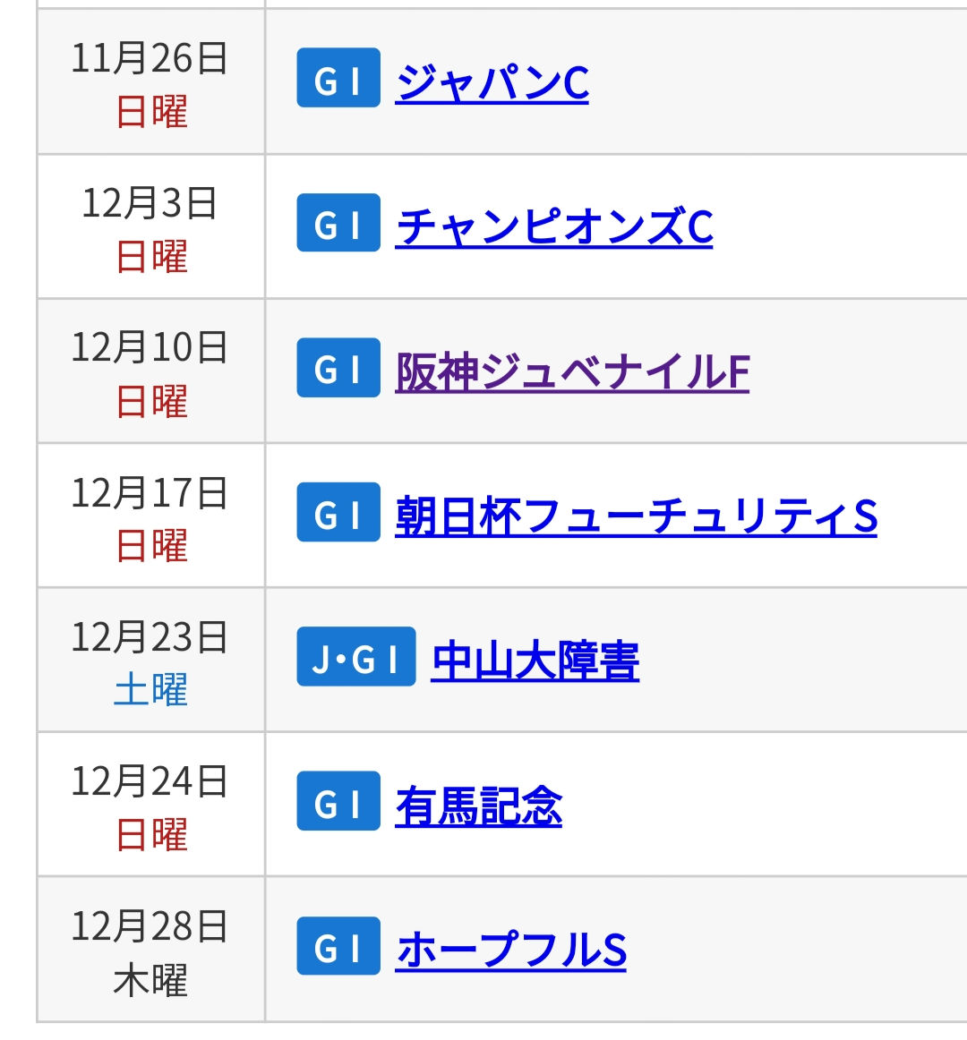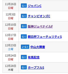 ・・・あと今年残ってる大きなレースって有馬記念くらいか?