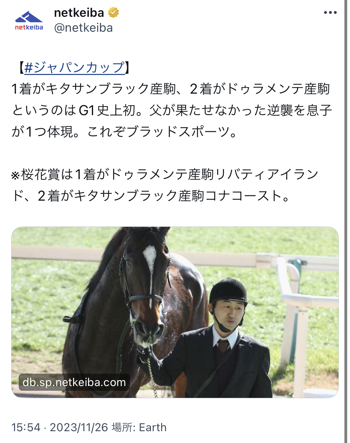イクイノくんがんばれ!親父(キタサン)が見てるぞ。