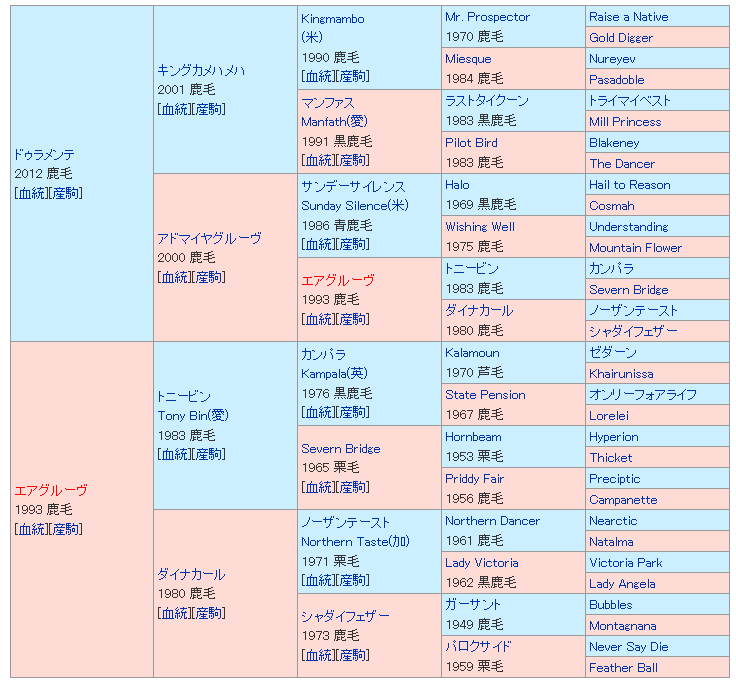 同配合検索したら秋華賞馬ディアドラが出てきた