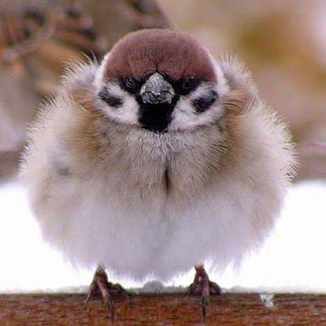シマエナガもいいけど冬毛のスズメもふわふわで可愛いよね