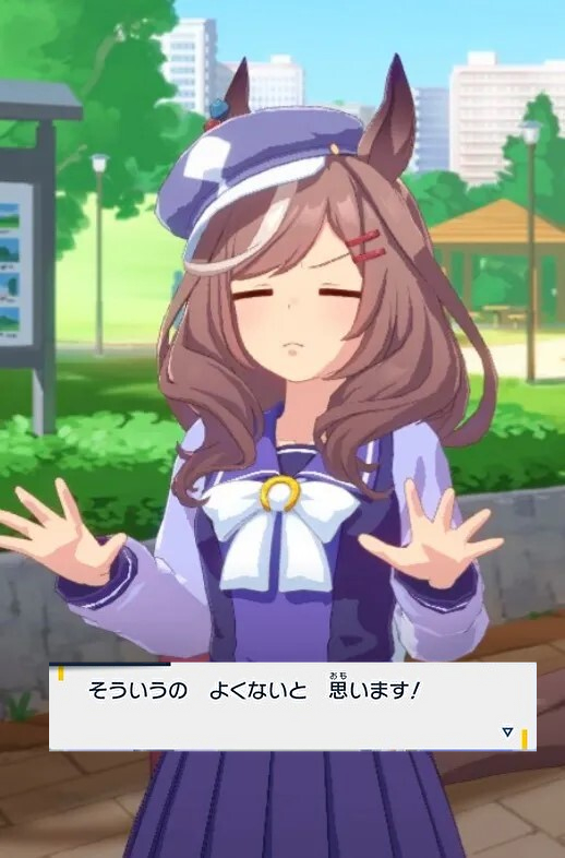 メガドリーム四天王の1人です。気だるげに見えますが、レースの実力は確かなようです。授業にはあまり出ないようで、3回も留年しているという噂も。