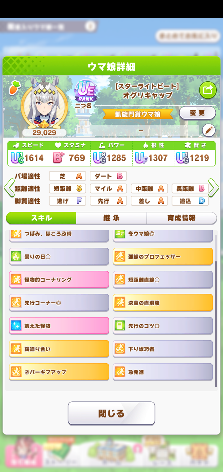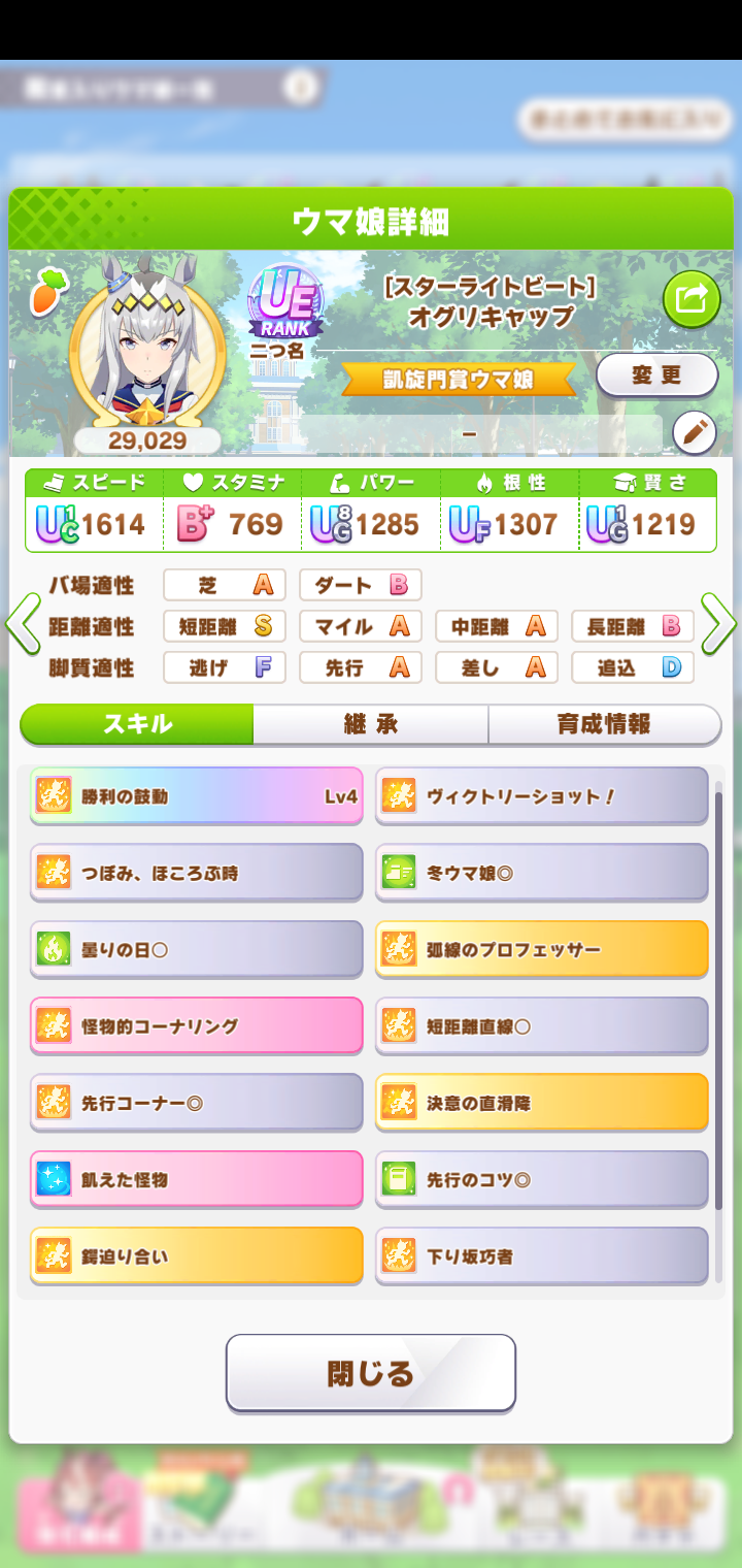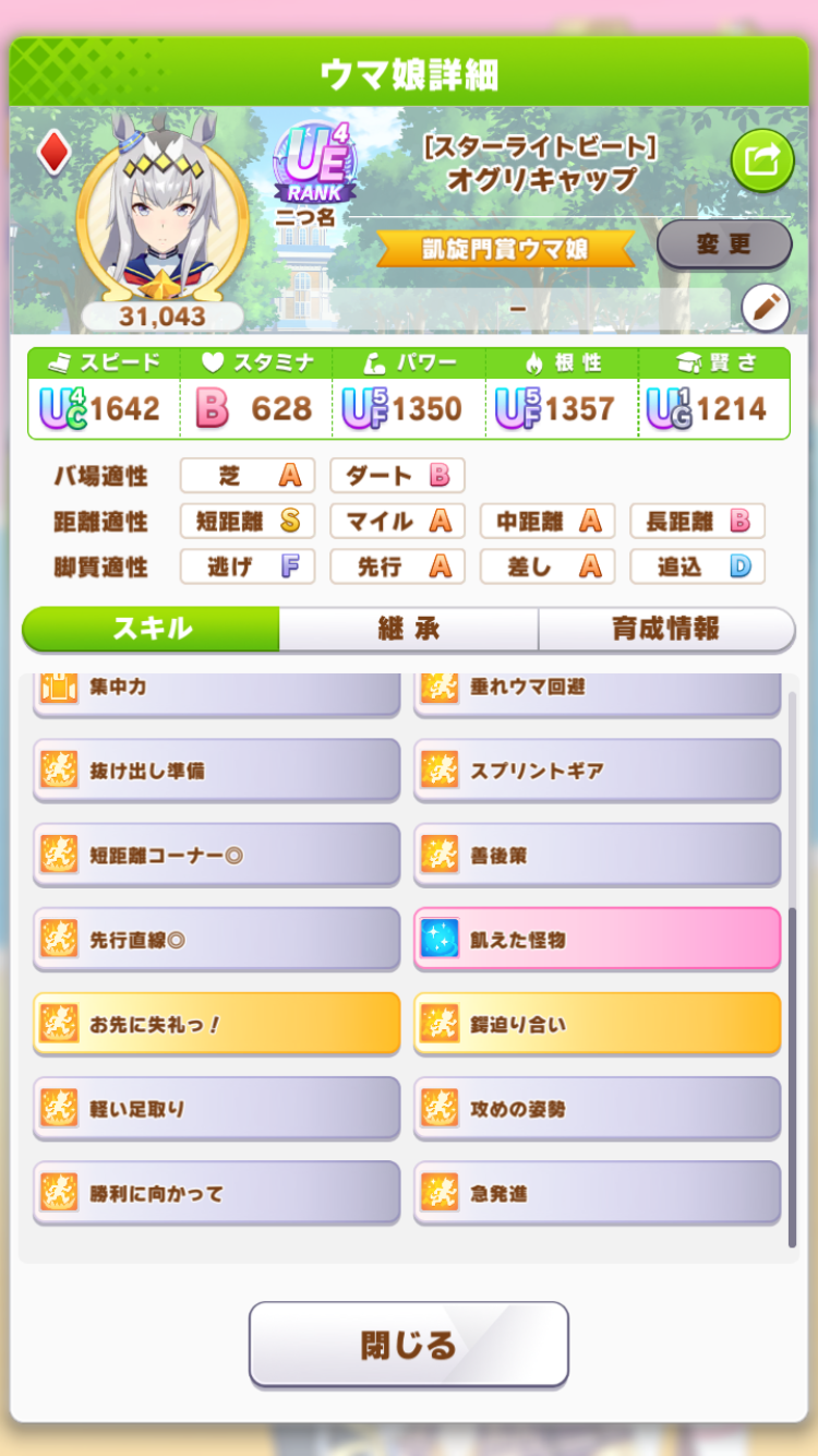 てかこのオグリ微妙だったから因子用にした個体じゃねぇか