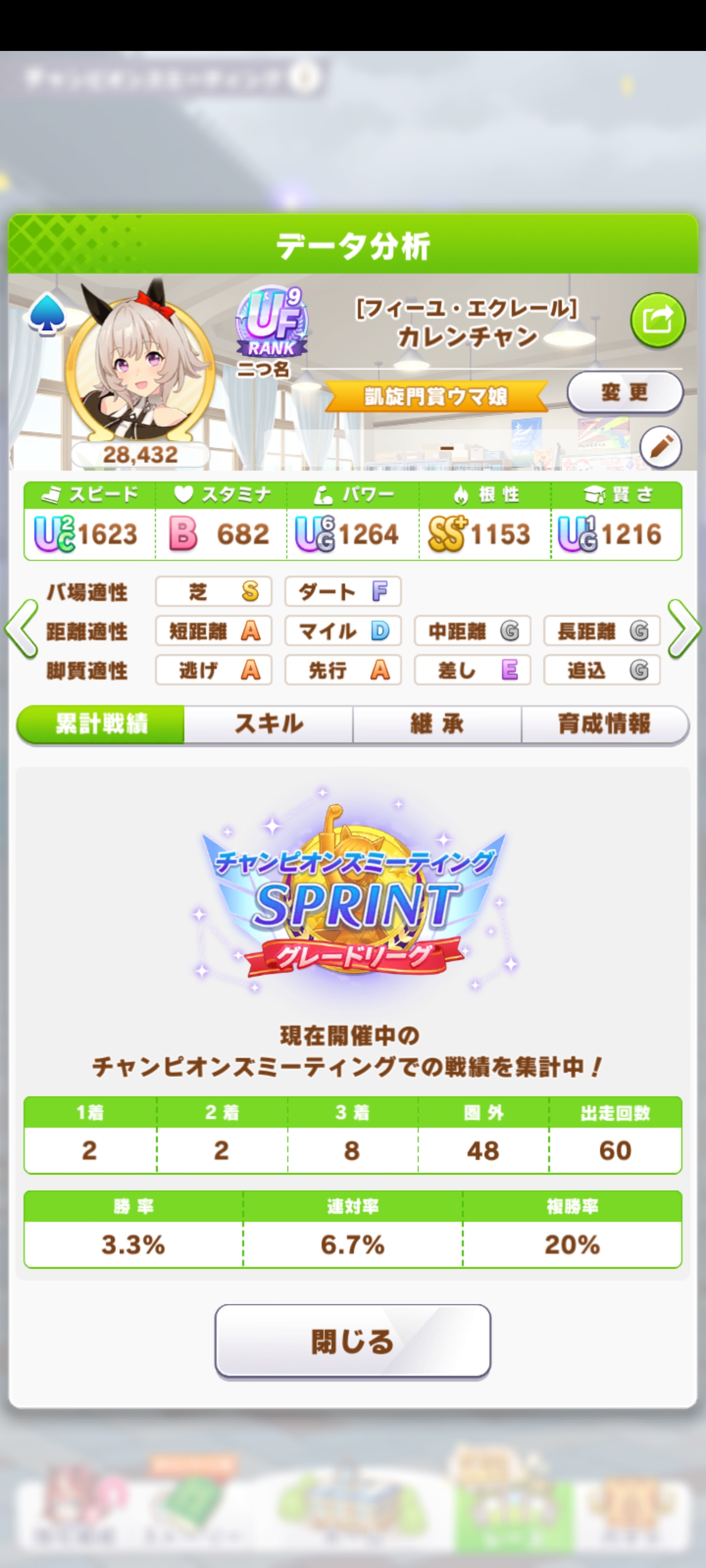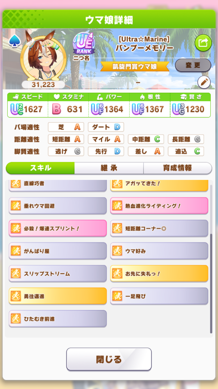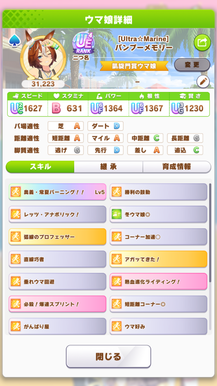 てかこのオグリ微妙だったから因子用にした個体じゃねぇか