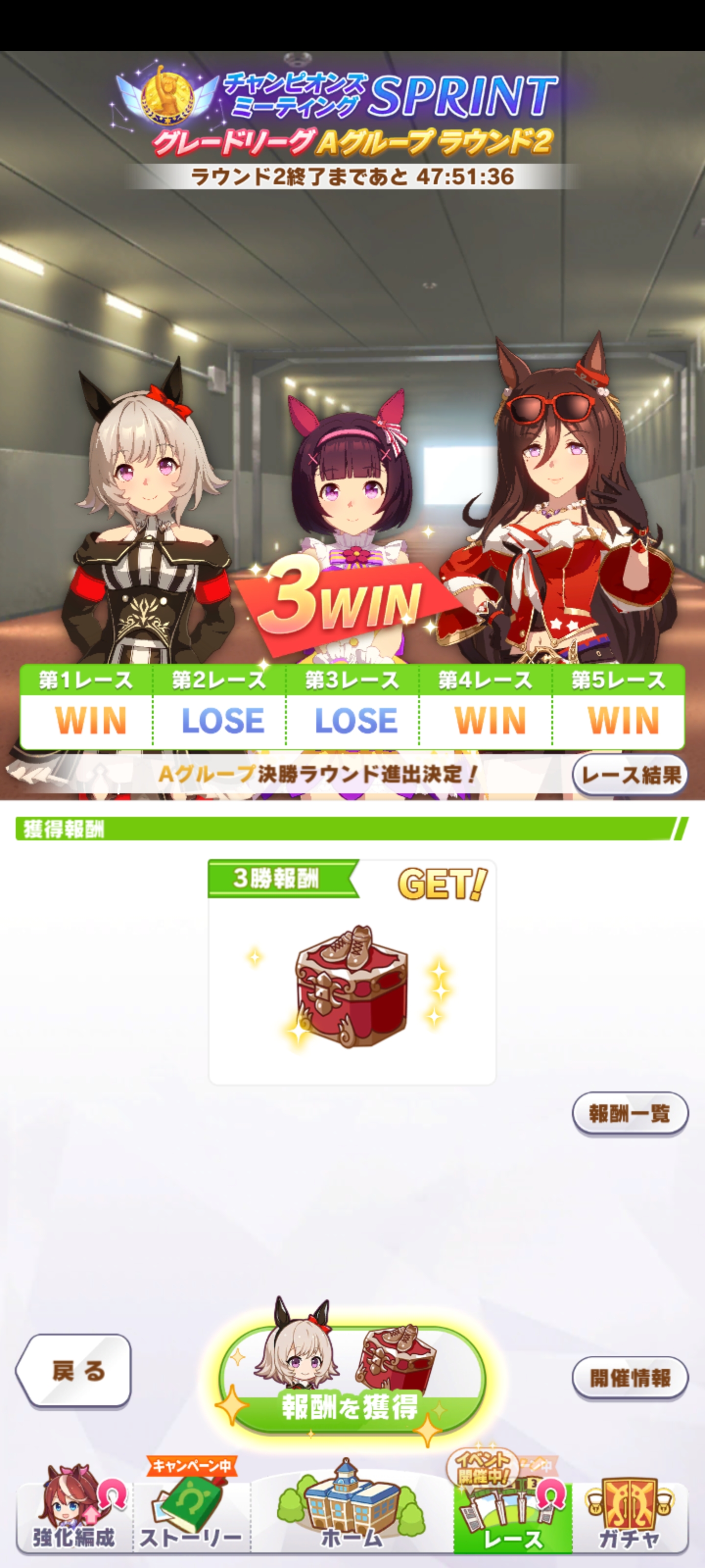A決勝、距離Aのやつに負けておクソですわ