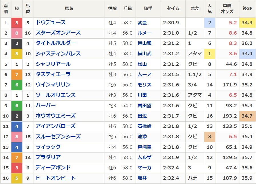 ジャパンカップの掲示板組がそのまま1,2,3着。