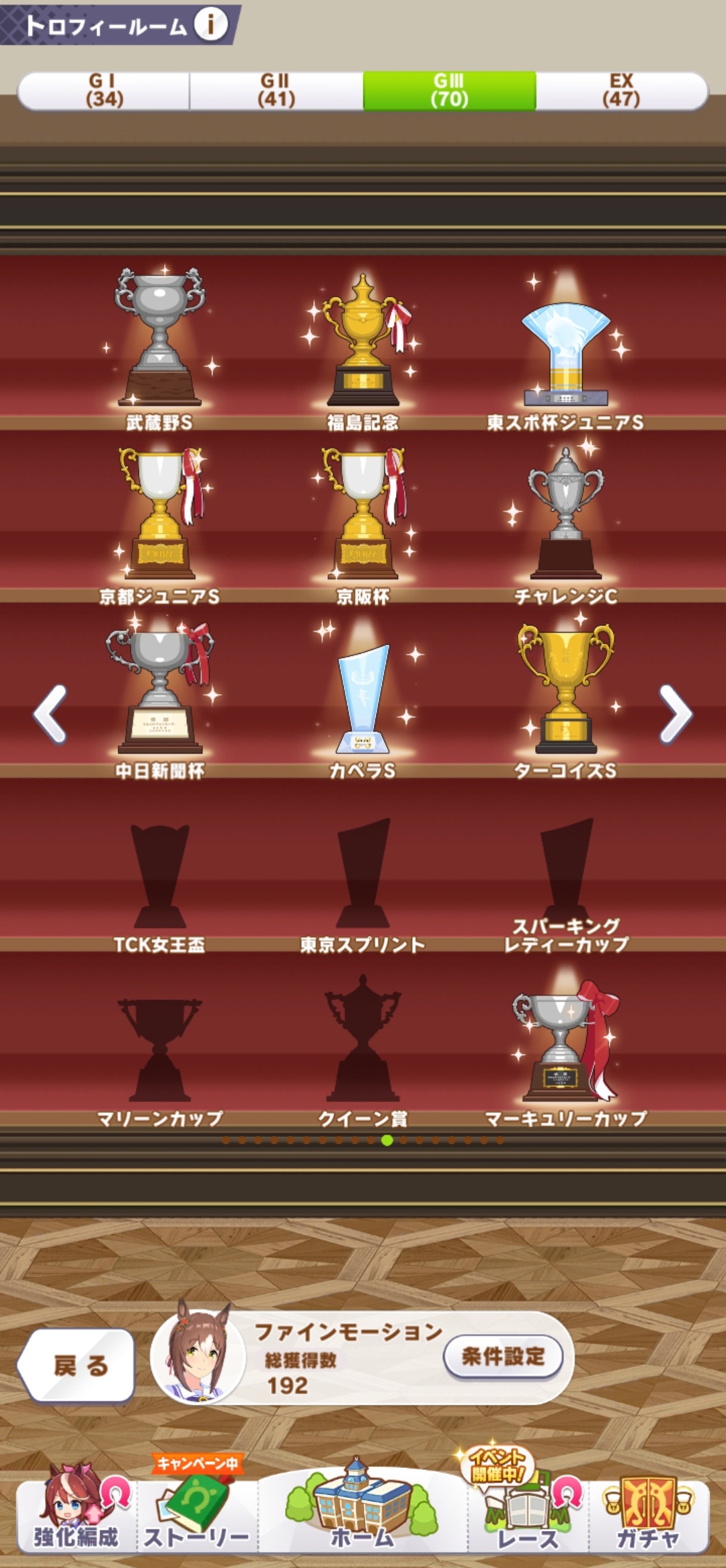 ちなみに地方ダート追加前にやったのでその分のトロフィーはあんまり埋まってません