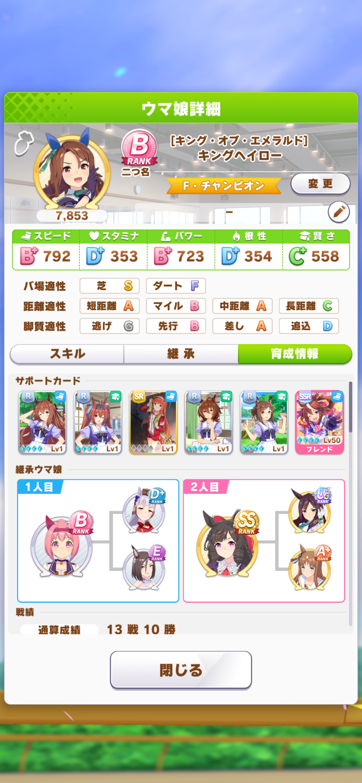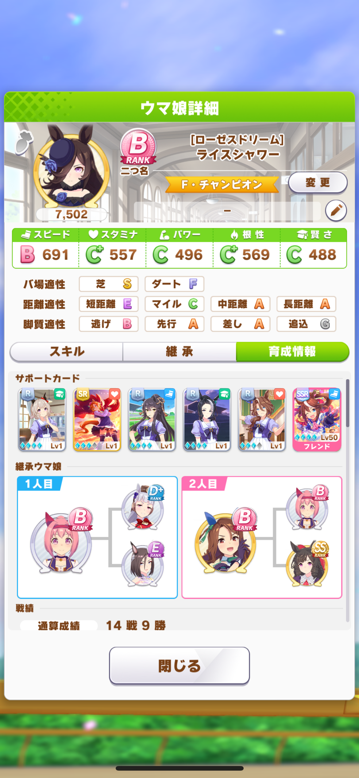 あとサポカも完凸してるけどレベル上げてないから目を瞑って欲しい