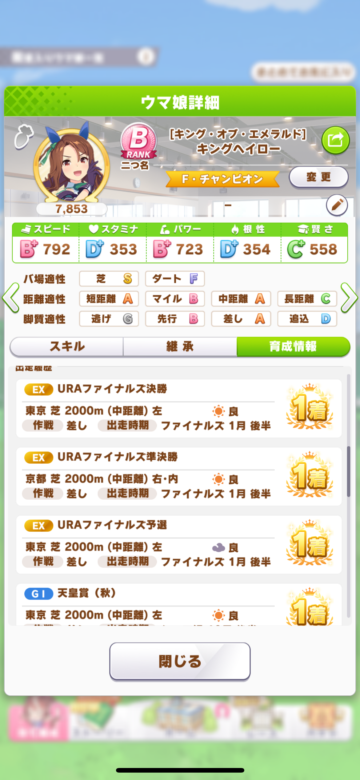 ⭐︎1キングヘイローを下記条件でURAシナリオをグッドエンド達成